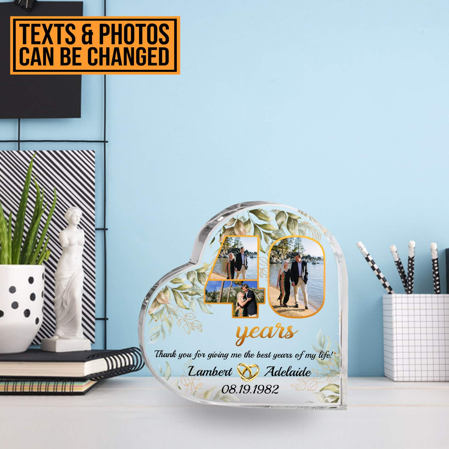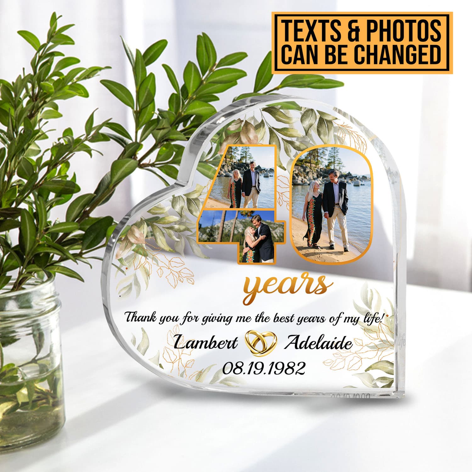 Let’s Shop Personalized Happy Anniversary 40th Wedding Gift for Couples Heart Acrylic Plaque – Custom Anniversary Keepsake Paperweight Gifts!