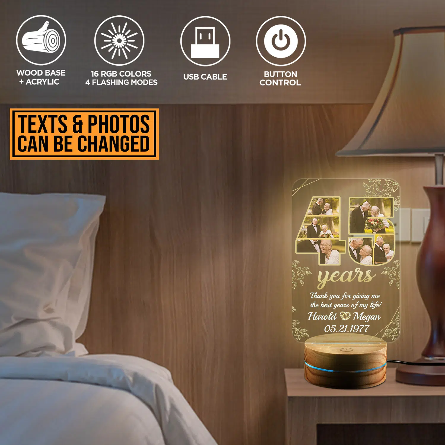 Let’s Shop Personalized Happy Anniversary 45th Wedding Gift for Couples – Romantic Custom Gifts for Him or Her – Wedding Anniversary Date LED Light!