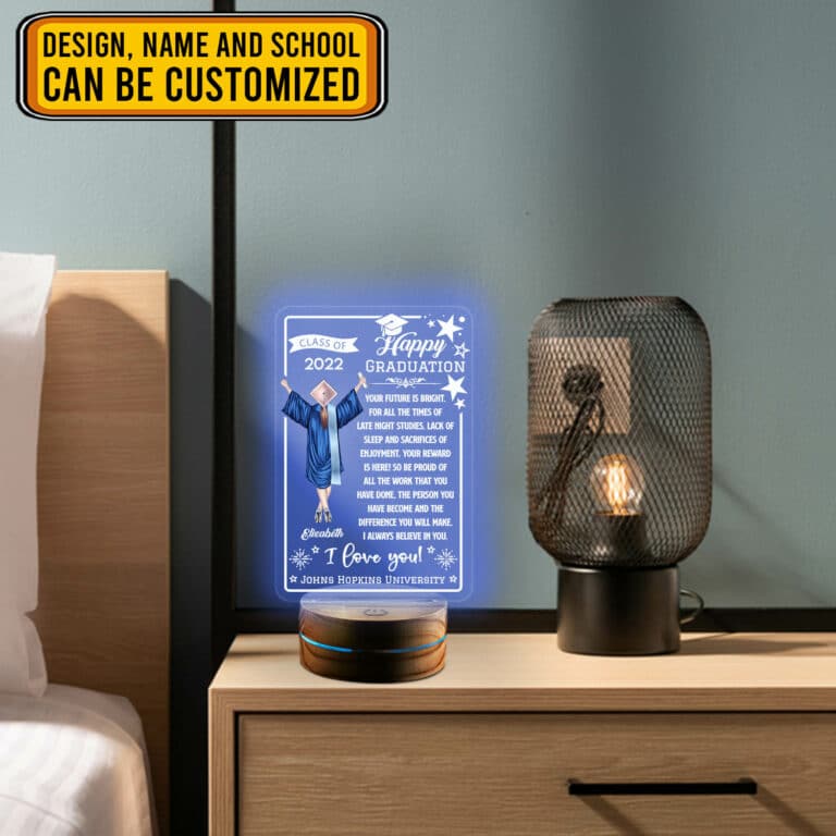 At CubeBik, besides 2D Night Light, we also offer tees, hoodies, sweaters, raglans, tanks, wall arts, canvases, posters, mugs, blankets, engraved jewelry, personalized necklaces, printed face masks, throw pillows, tote bags, hats, accessories and more on our website, so do not miss our other Personalized Graduation Gifts, High School Graduation Gifts, College Graduation Gifts, Graduation Gifts, Graduation Gifts for Her 2022, Graduation Gifts for Him, College Graduation Gifts for Her, Graduation Announcements 2022, Cool Graduation Gifts related merchandise. Moreover, all the products are made-to-order and one of a kind custom designs you can’t get elsewhere in normal stores. Let’s discover CubeBik.com now and find your favorite personalized items. We can’t wait to surprise and build beautiful memories with you and your loved ones.
