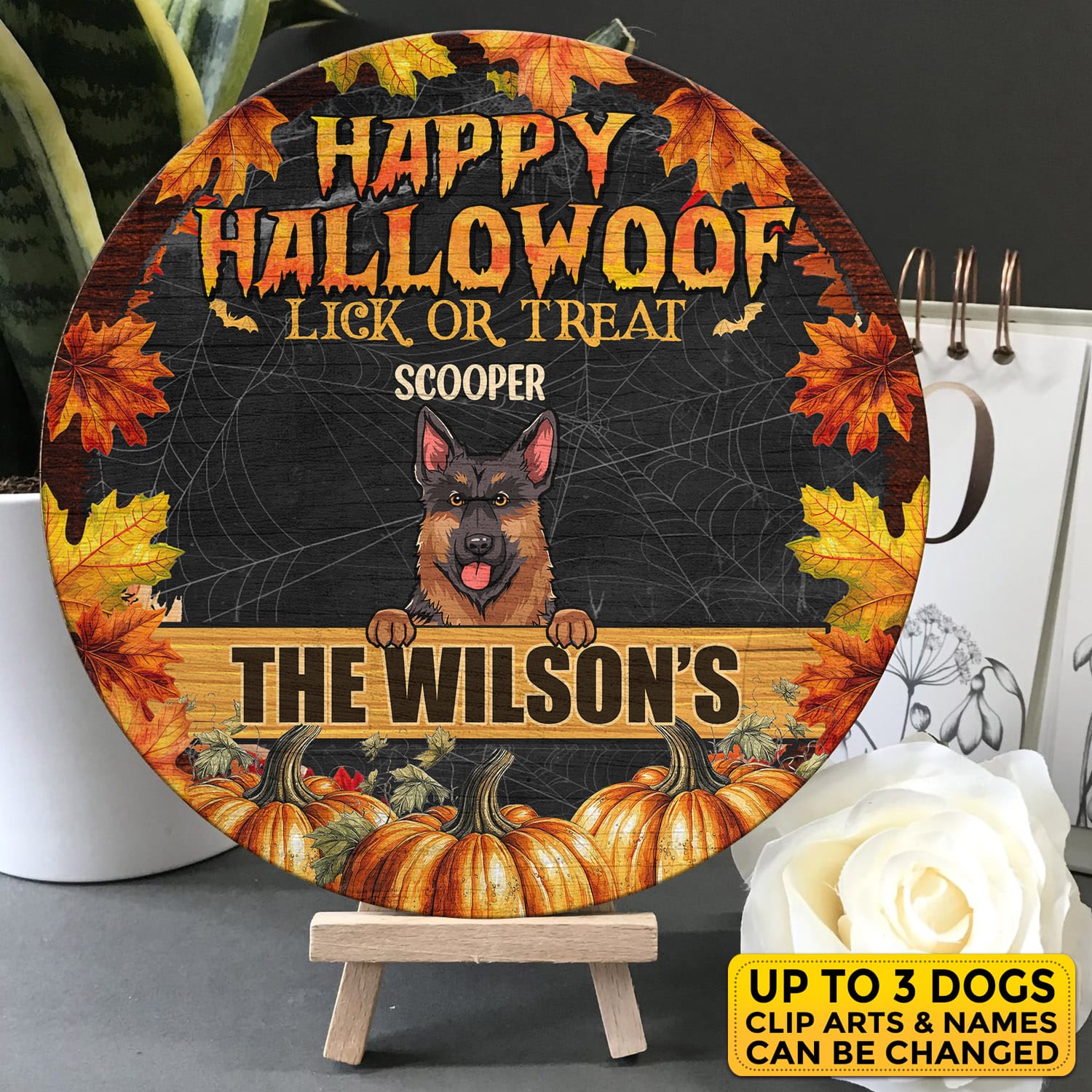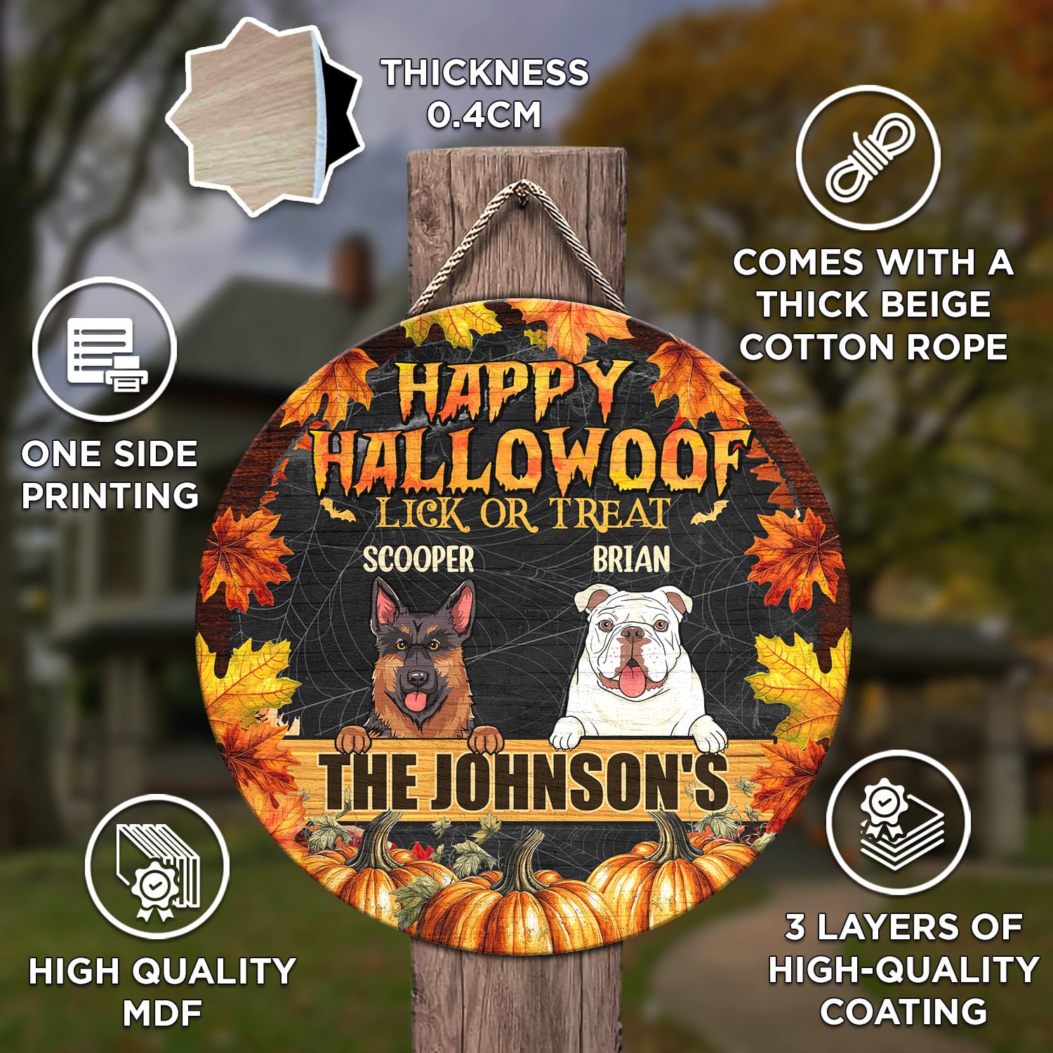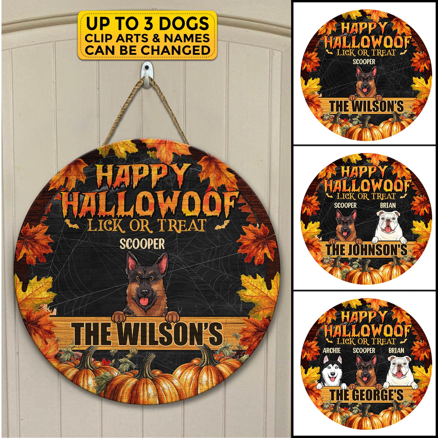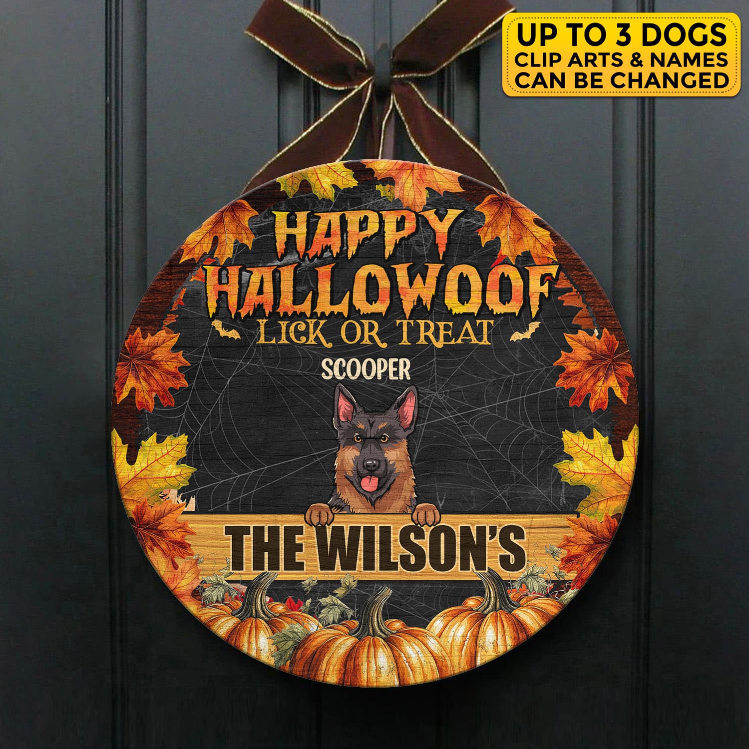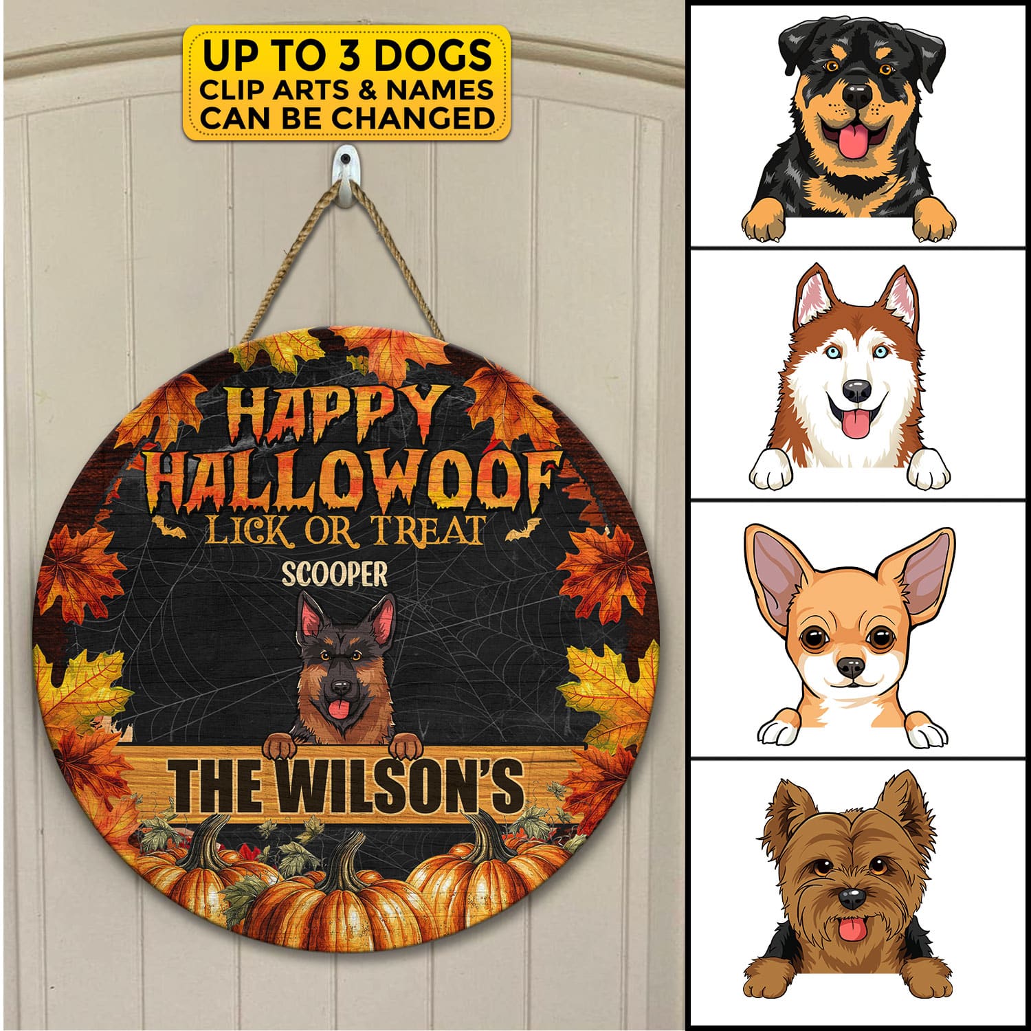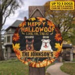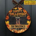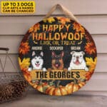 Let’s Shop Personalized Happy Hallowoof Lick Or Treat Circle Wooden Door Sign – Custom Dog Breeds Halloween Door Sign!