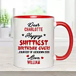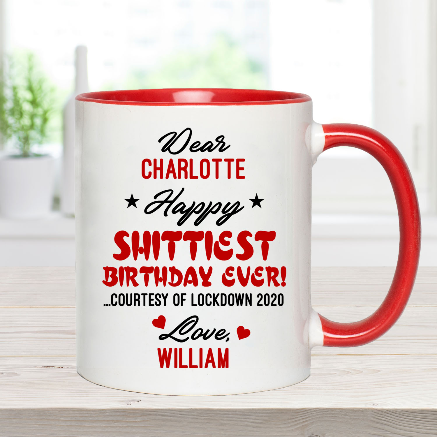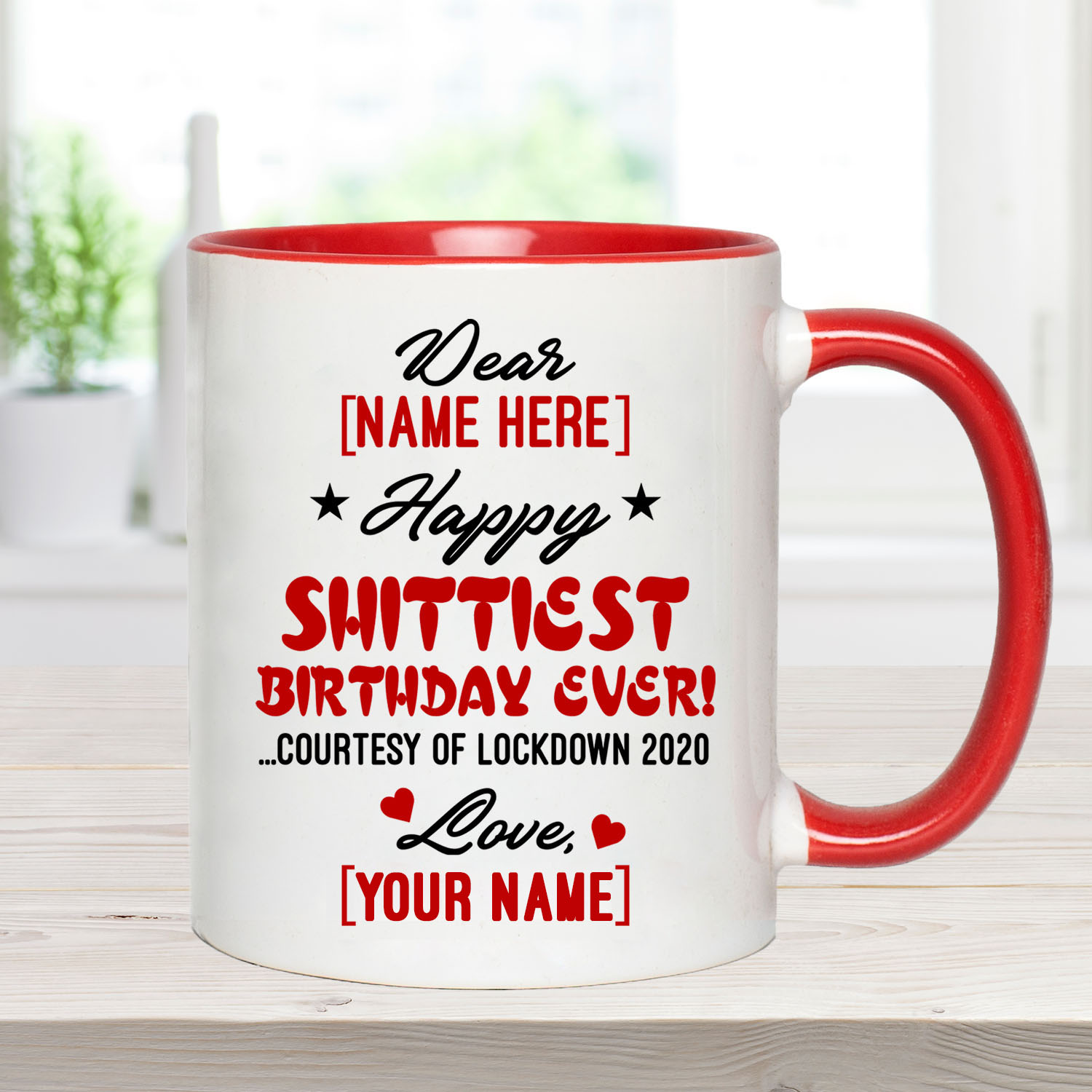 Shop Personalized Happy Shittiest Birthday Ever Courtesy of Lockdown 2020 Funny Accent Mug.