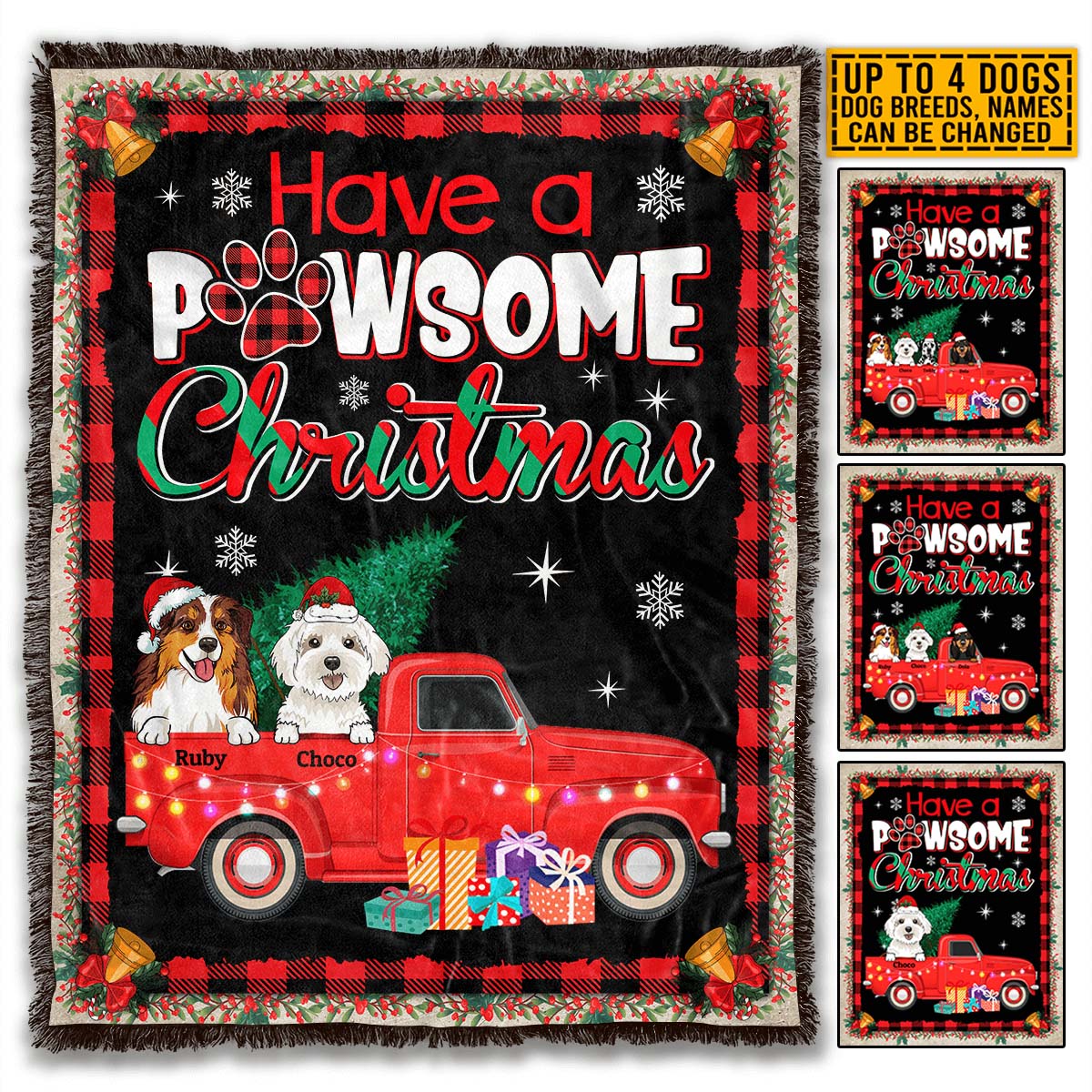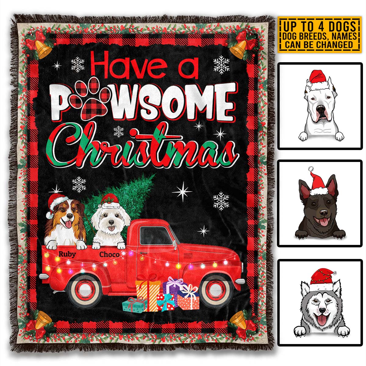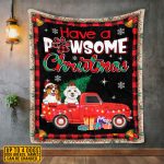 Let’s Shop Personalized Have A Pawsome Christmas Blanket – Custom Christmas Dog Breeds Fleece Blanket!
