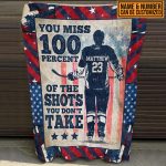 Let’s Shop Personalized Hockey You Miss 100 Percent Of The Shots You Don’t Take American Flag Fleece Blanket – Sherpa Blanket!