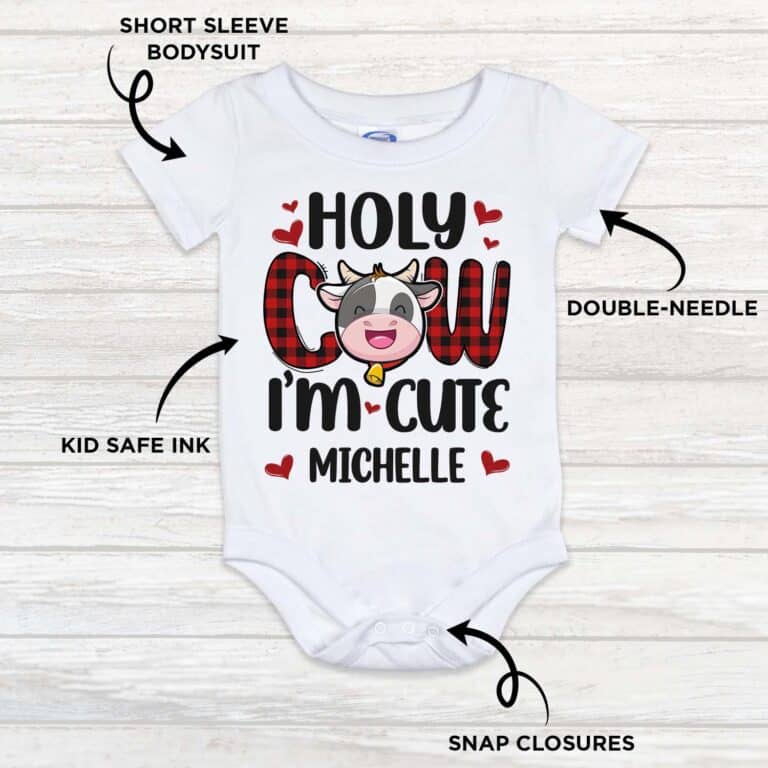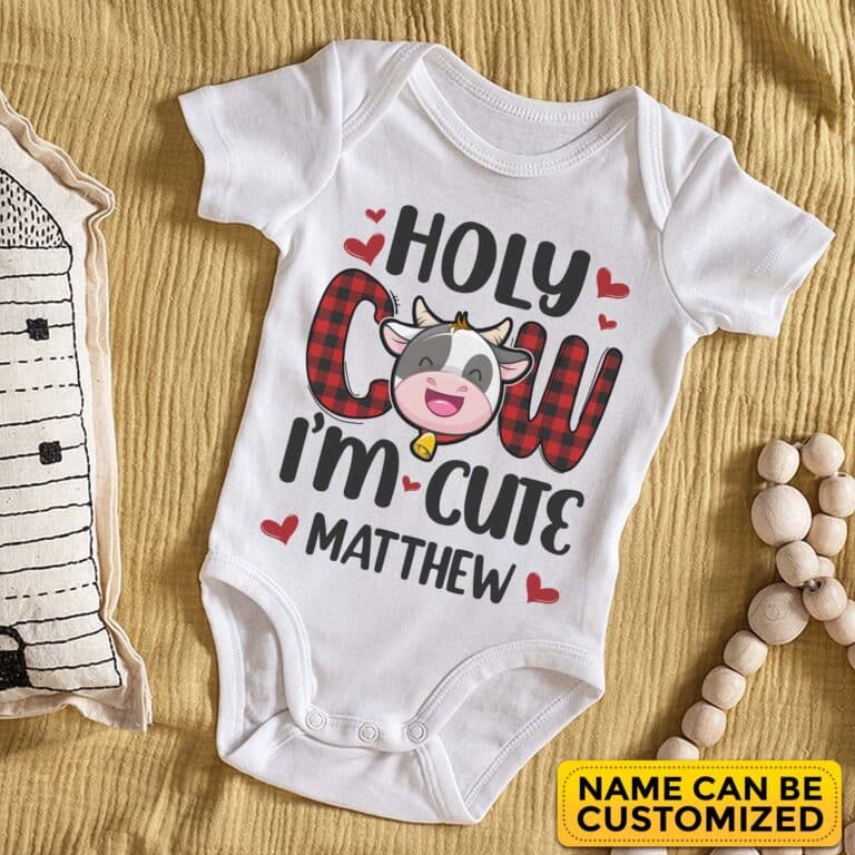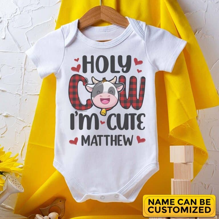 Are you spending too much time to find creative merchandise for you or suitable & special gifts for your mommy, your daddy, your son, your daughter, your children, your friends or someone you love? The struggle is over because we have various Holy Cow I’m Cute Onesie, Holy Cow I’m Cute Jumpsuit, Holy Cow I’m Cute Baby Shirt, Holy Cow I’m Cute Newborn Onesie, Funny Cow Baby Onesie which will make perfect presents for your beloveds. In order to make your present stand out, we have created lots of unique and awesome customized photo gifts & personalized designs.