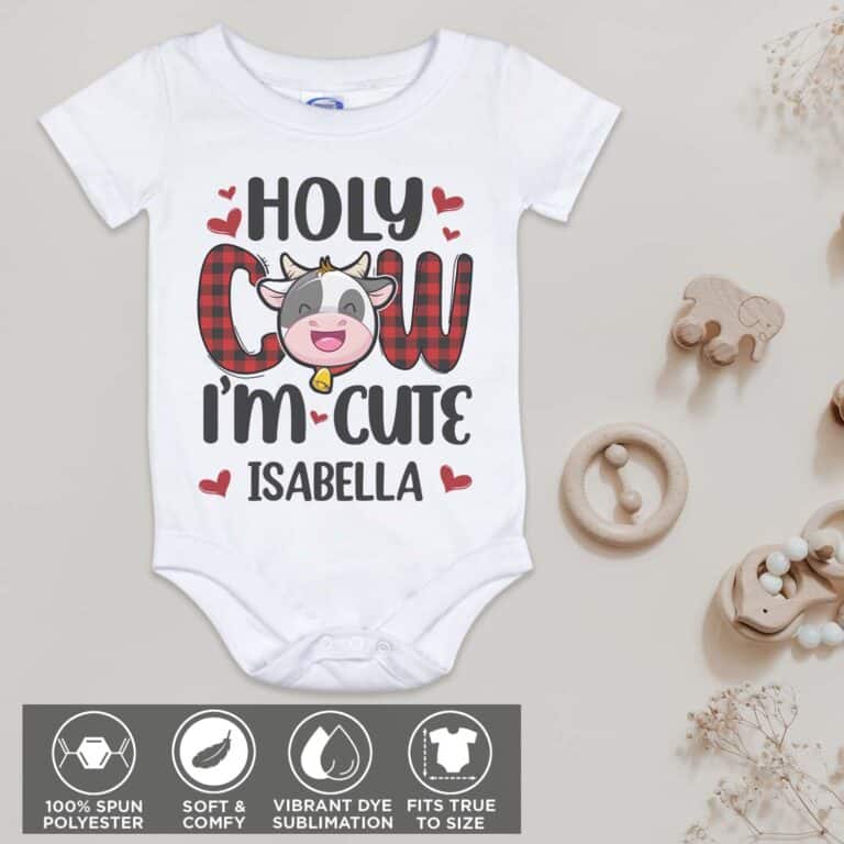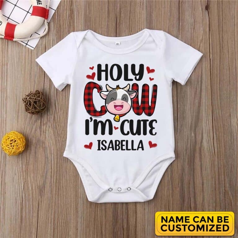 Let’s Shop Personalized Holy Cow I’m Cute Funny Baby Onesie – Baby Jumpsuit!