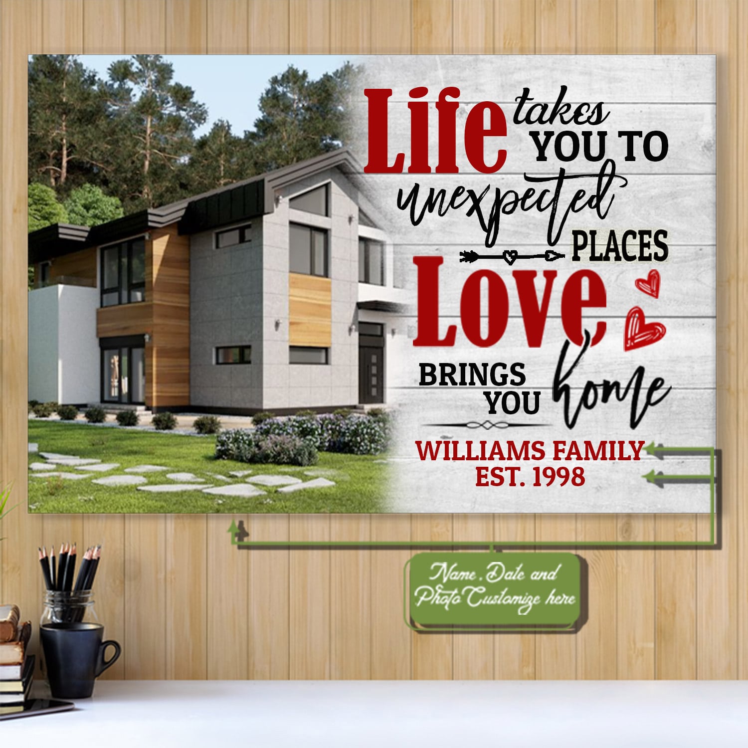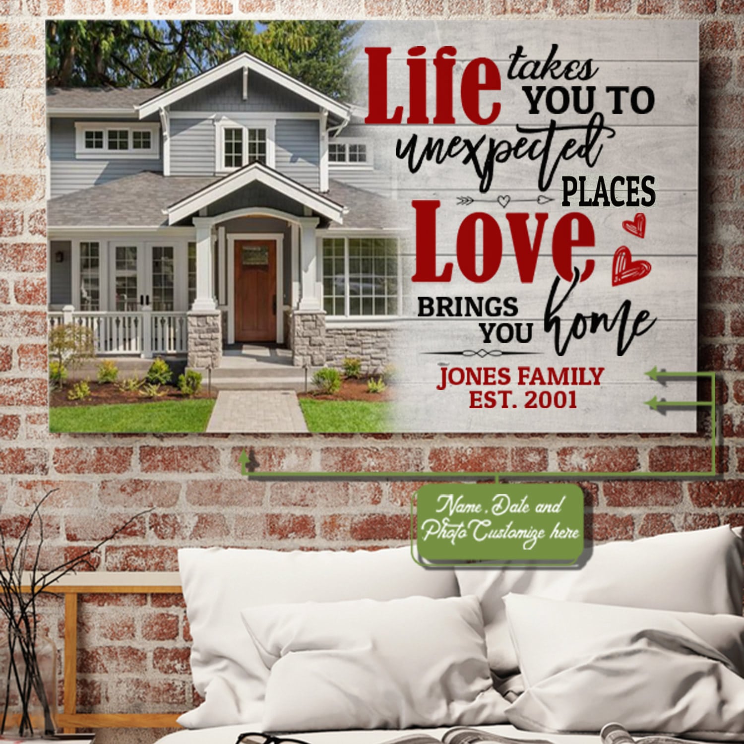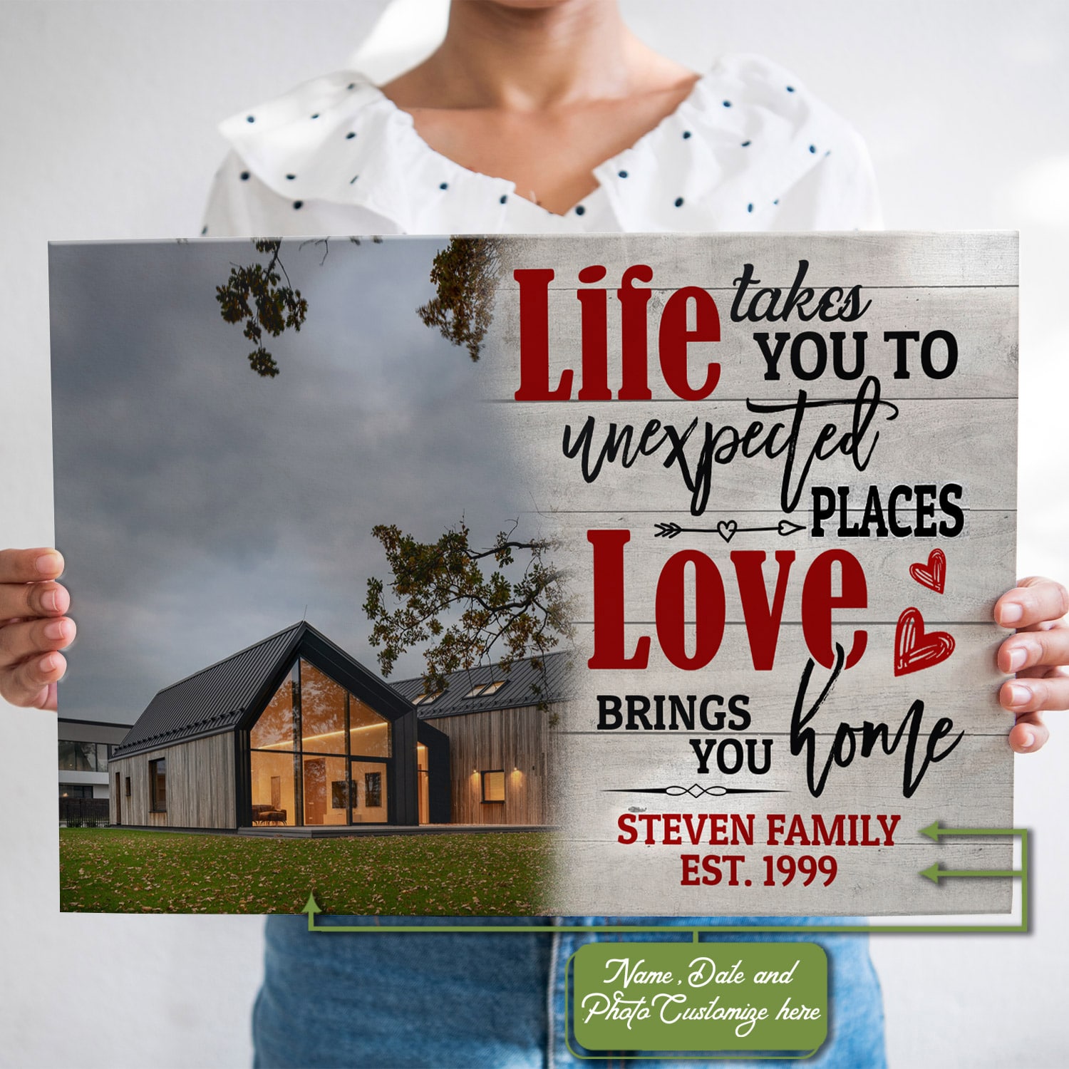 Are you spending too much time to find creative merchandise for you or suitable & special gifts for your mommy, your daddy, your son, your daughter, your children, your friends or someone you love? The struggle is over because we have various Life Takes You to Unexpected Places Love Brings You Home, Home Canvas Painting, Home Decor, Farmhouse Decor, Living Room Decor, Housewarming Gift, Personalized Home Deco, Personalized Home Decorations, Personalized Home Decor Signs, Personalized Home Decor Gifts which will make perfect presents for your beloveds. In order to make your present stand out, we have created lots of unique and awesome customized photo gifts & personalized designs.