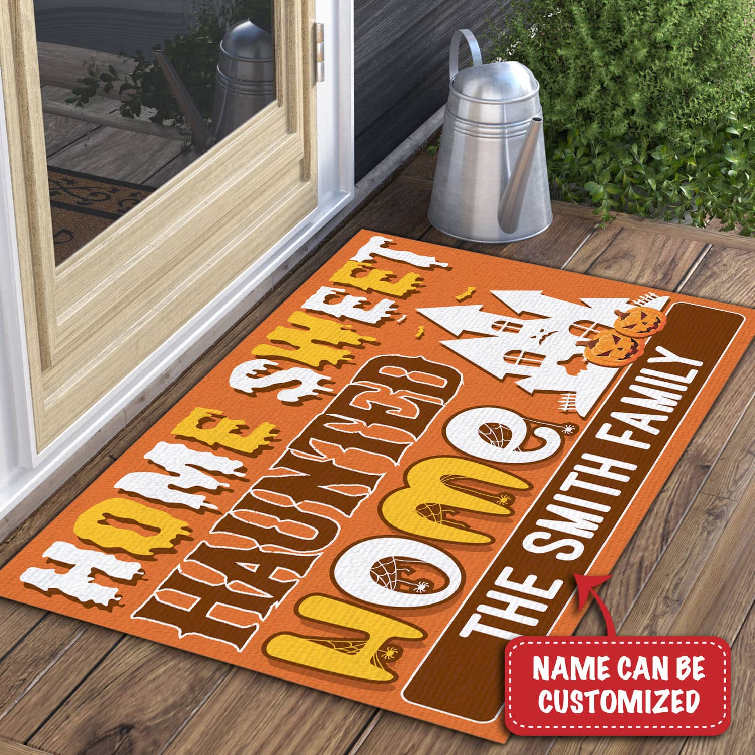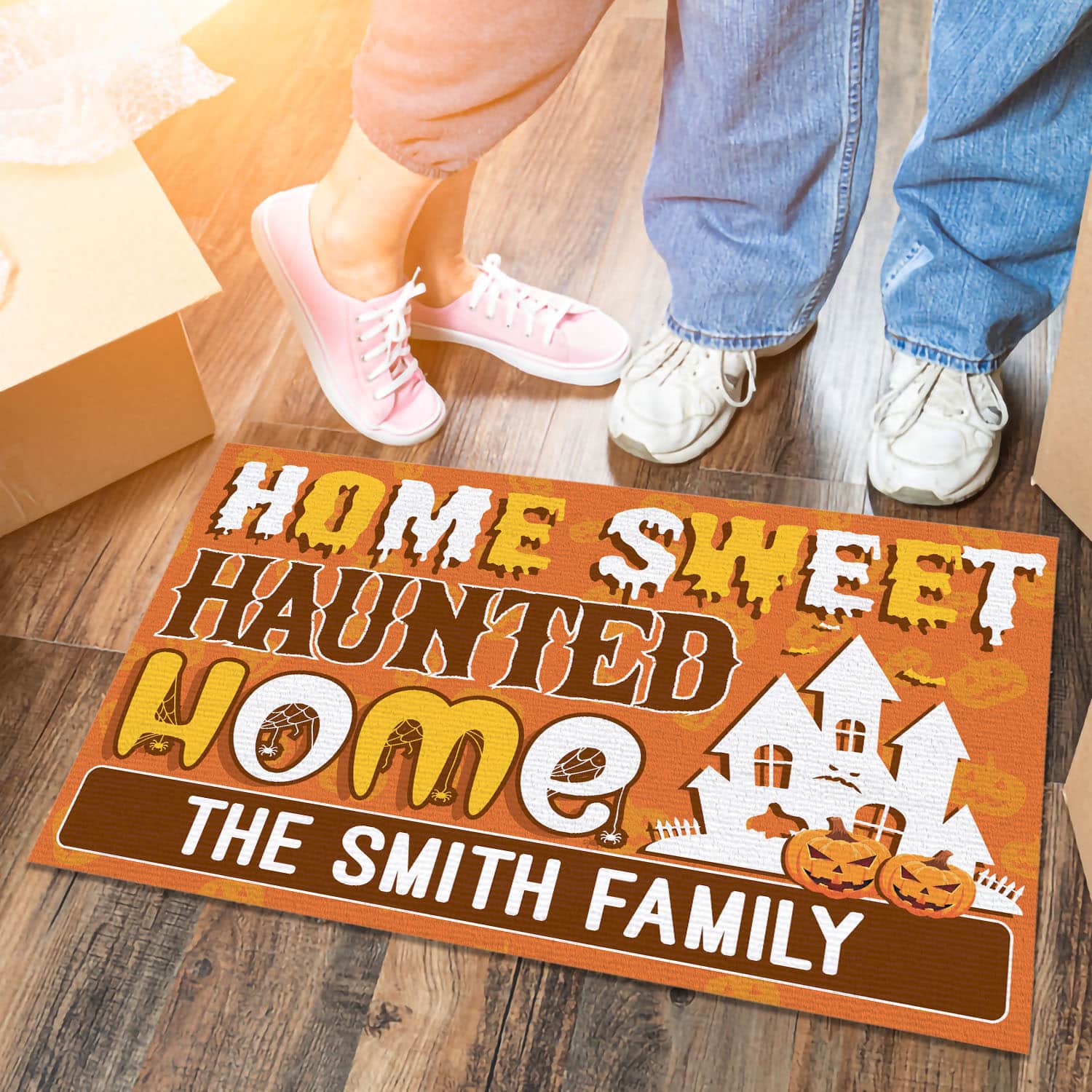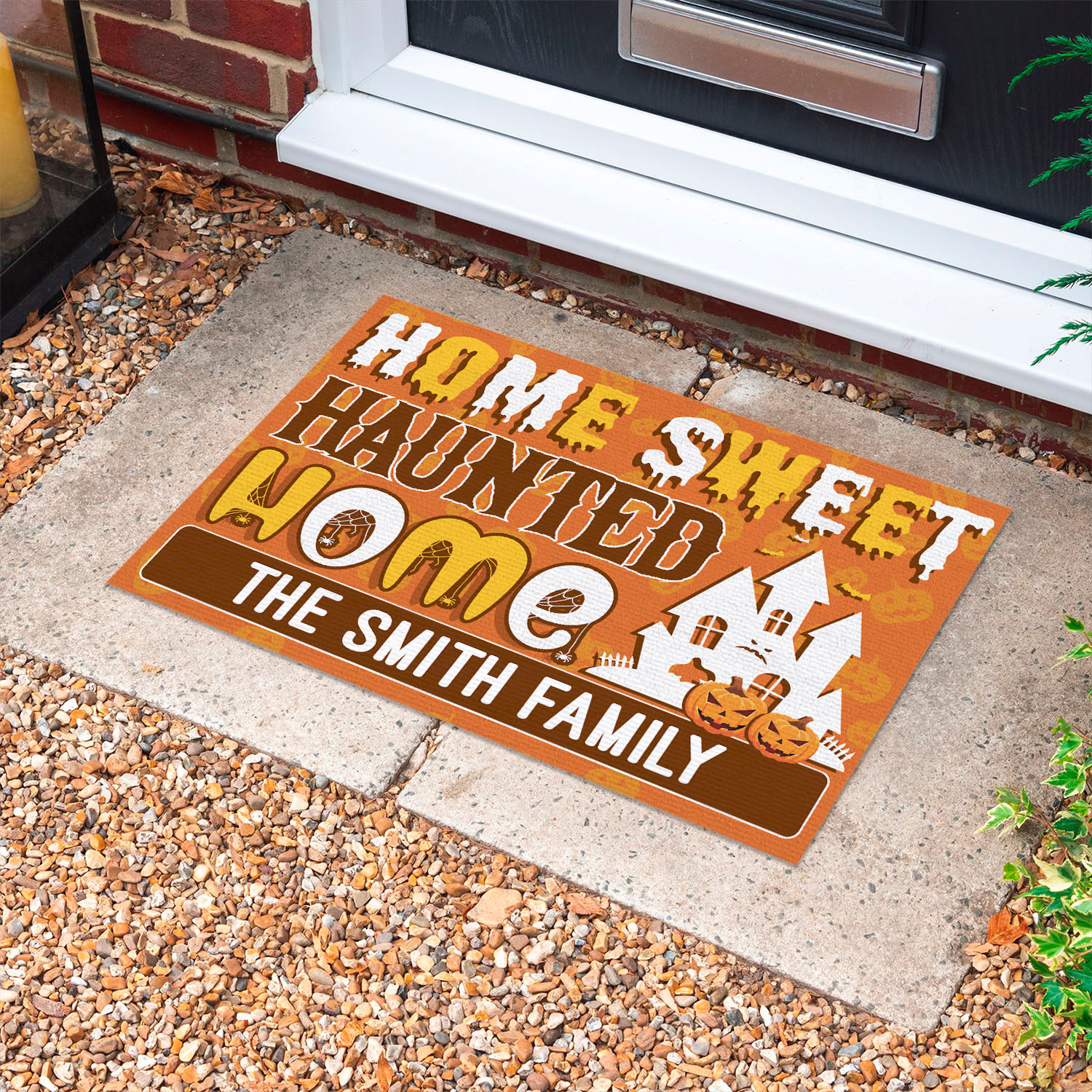 Let’s Shop Personalized Home Sweet Haunted Home Halloween House Doormat – Custom Name Halloween Outdoor Indoor Doormat!