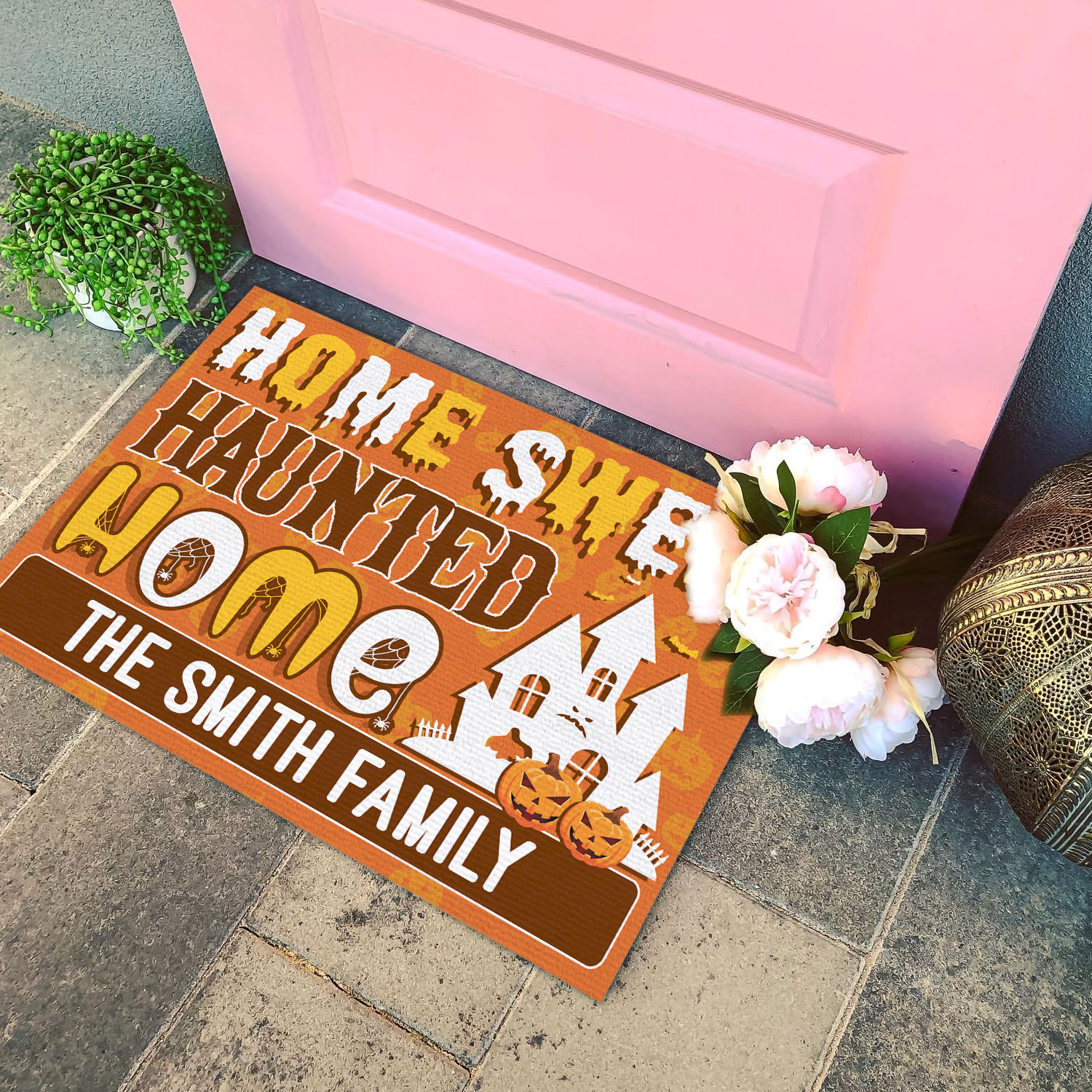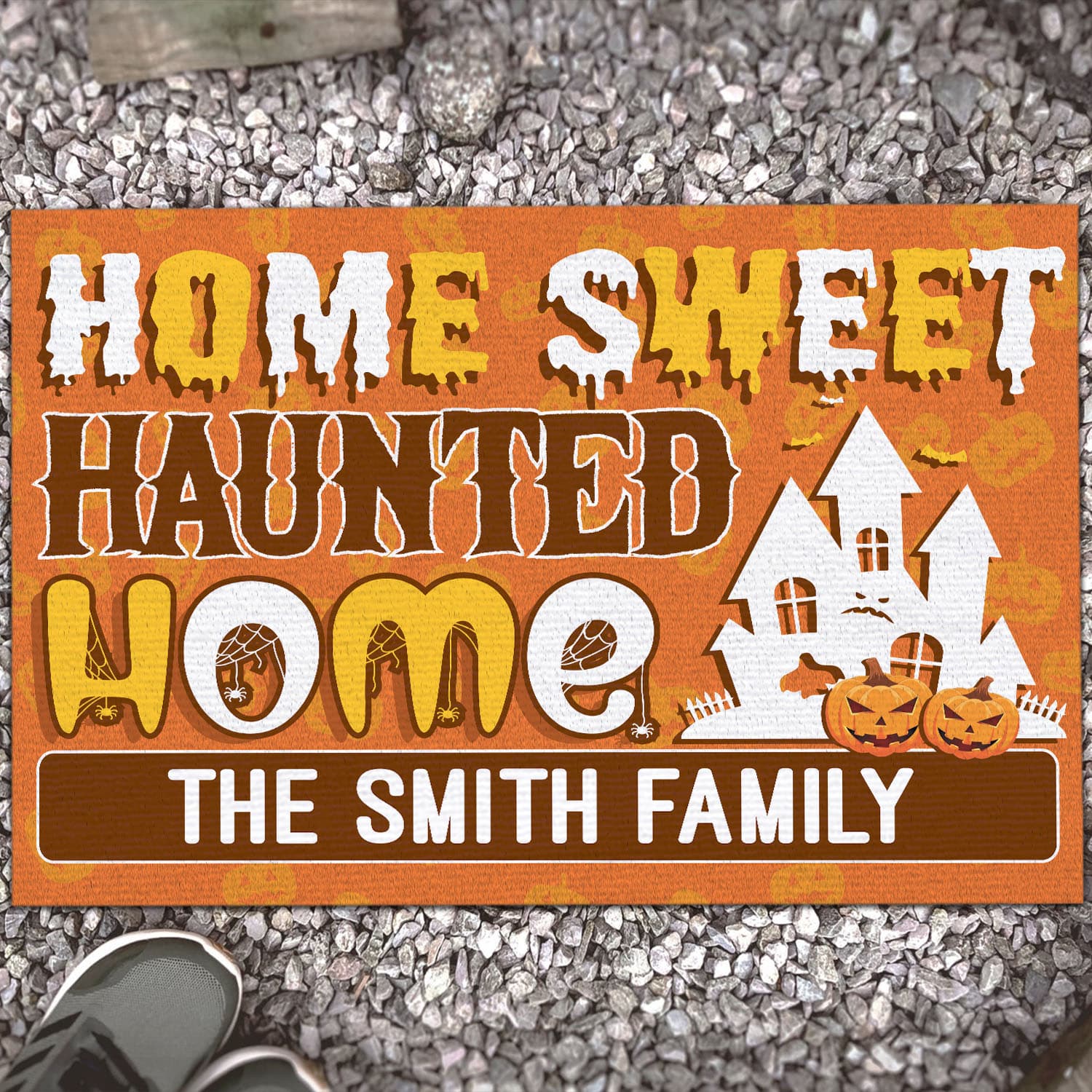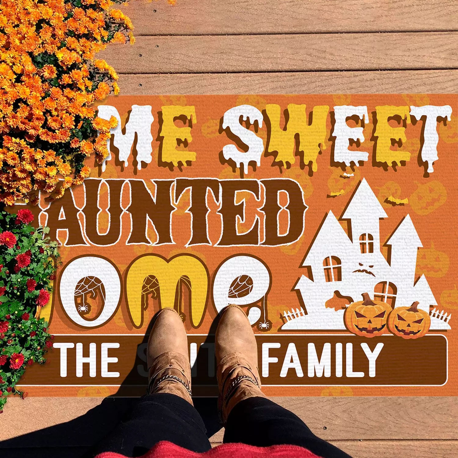 Let’s Shop Personalized Home Sweet Haunted Home Halloween House Doormat – Custom Name Halloween Outdoor Indoor Doormat!