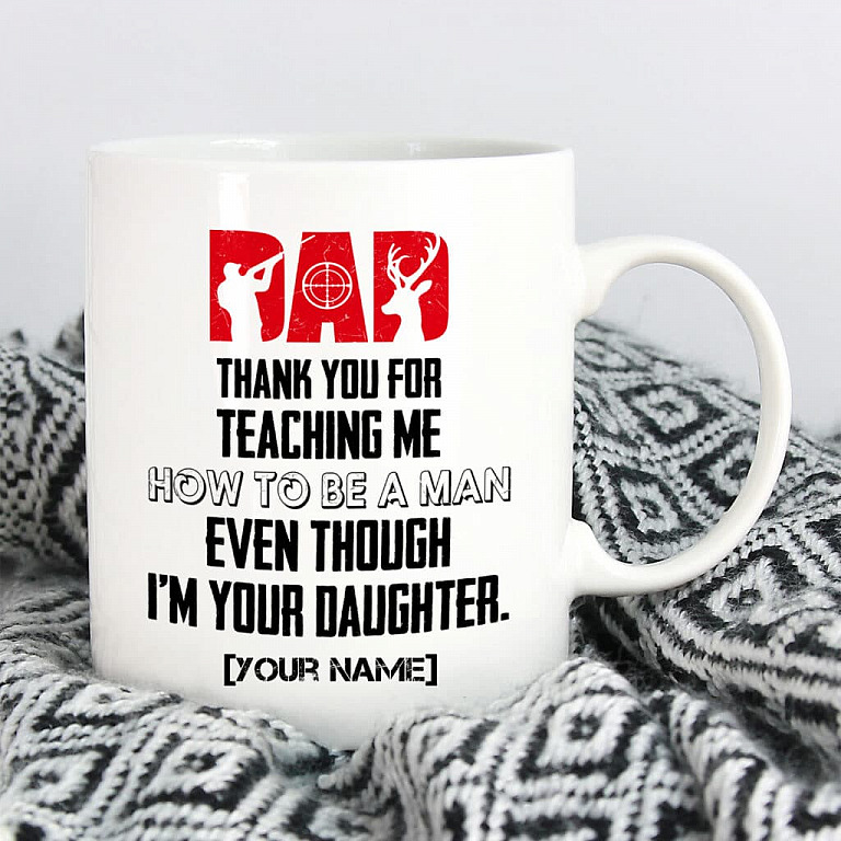 Let’s Shop Personalized Dad Thank You For Teaching Me How To Be A Man Even Though I’m Your Daughter Mug – Personalized Hunting Mug!