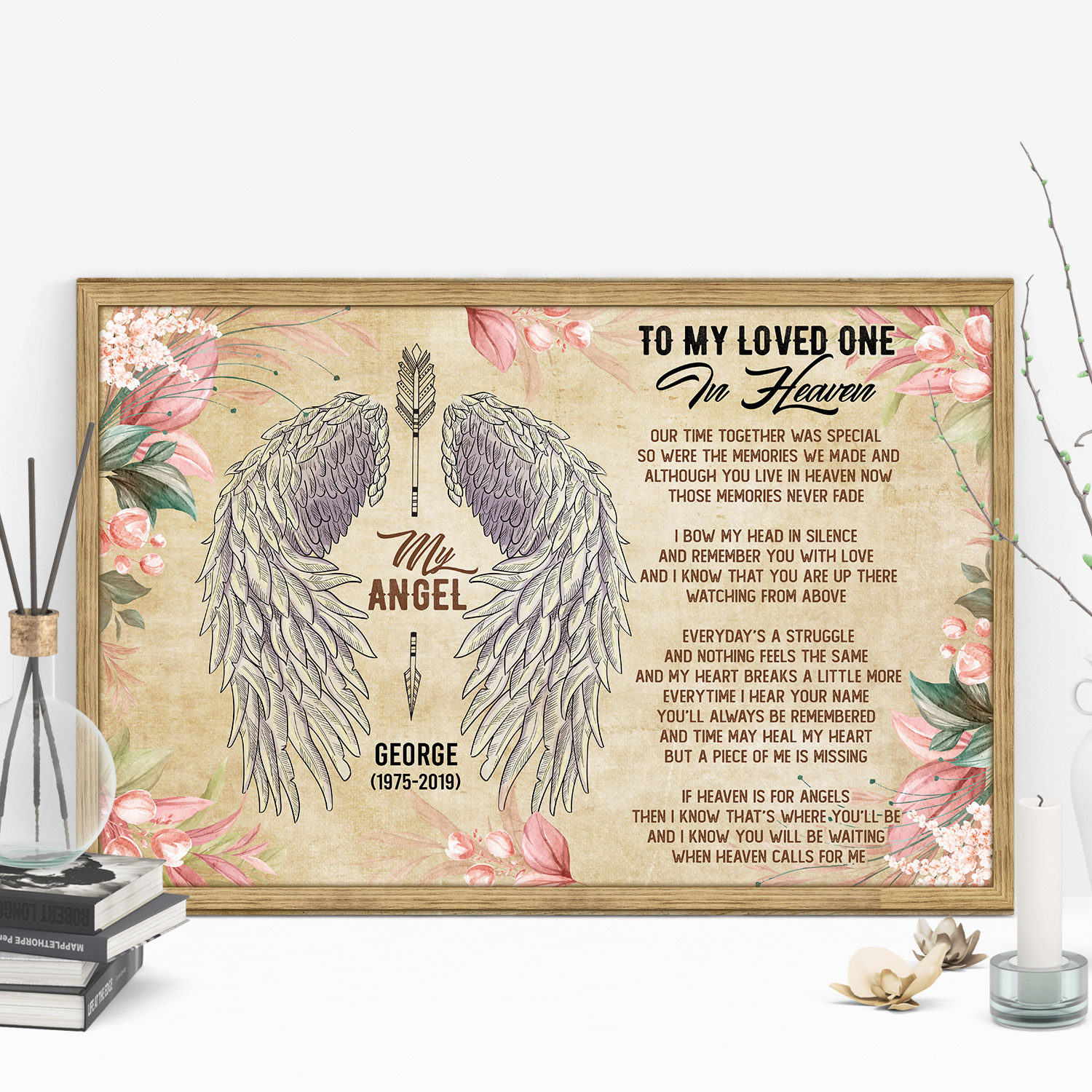 Are you spending too much time to find creative merchandise for you or suitable & special gifts for your mommy, your daddy, your son, your daughter, your children, your friends or someone you love? The struggle is over because we have various Memorial Canvas Prints, Memorial Poster, Personalized Memorial Gifts, Personalized Memorial Gifts for Loss of Husband, Remembrance Gifts for Loss of Husband, Gift for Wife Who Lost Husband, Memorial Gifts for Loss of Loved One, Personalized Memory Gifts for Loss Loved Ones, My Angel Husband Poster which will make perfect presents for your beloveds. In order to make your present stand out, we have created lots of unique and awesome customized photo gifts & personalized designs.