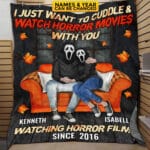 Let’s Shop Personalized I Just Want To Cuddle And Watch Horror Movies Halloween Couple Fleece Blanket – Sherpa Blanket!