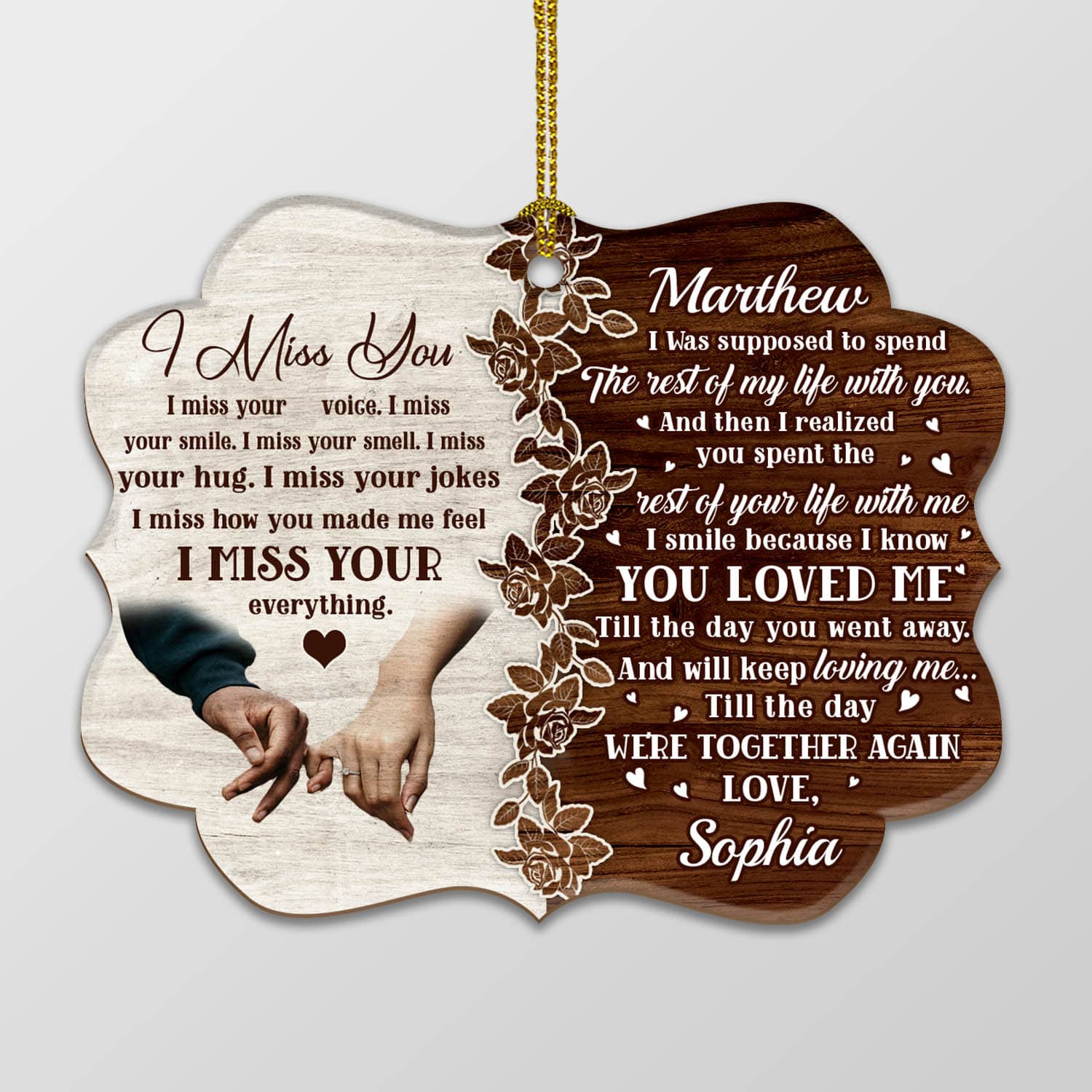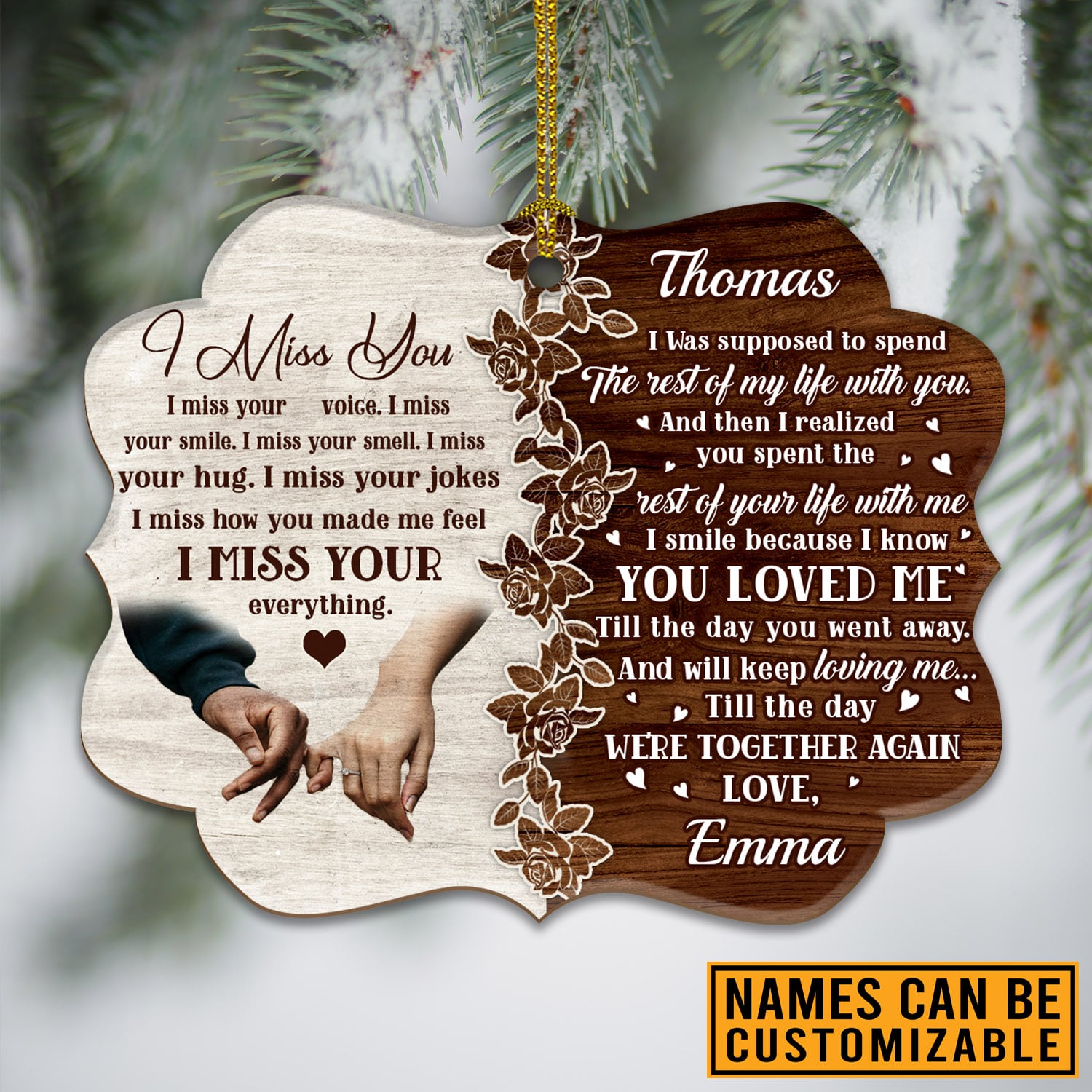 Let’s Shop Personalized I Miss You I Miss Your Voice I Miss Your Smile Husband Memorial Custom Shaped Wooden Christmas Ornament!