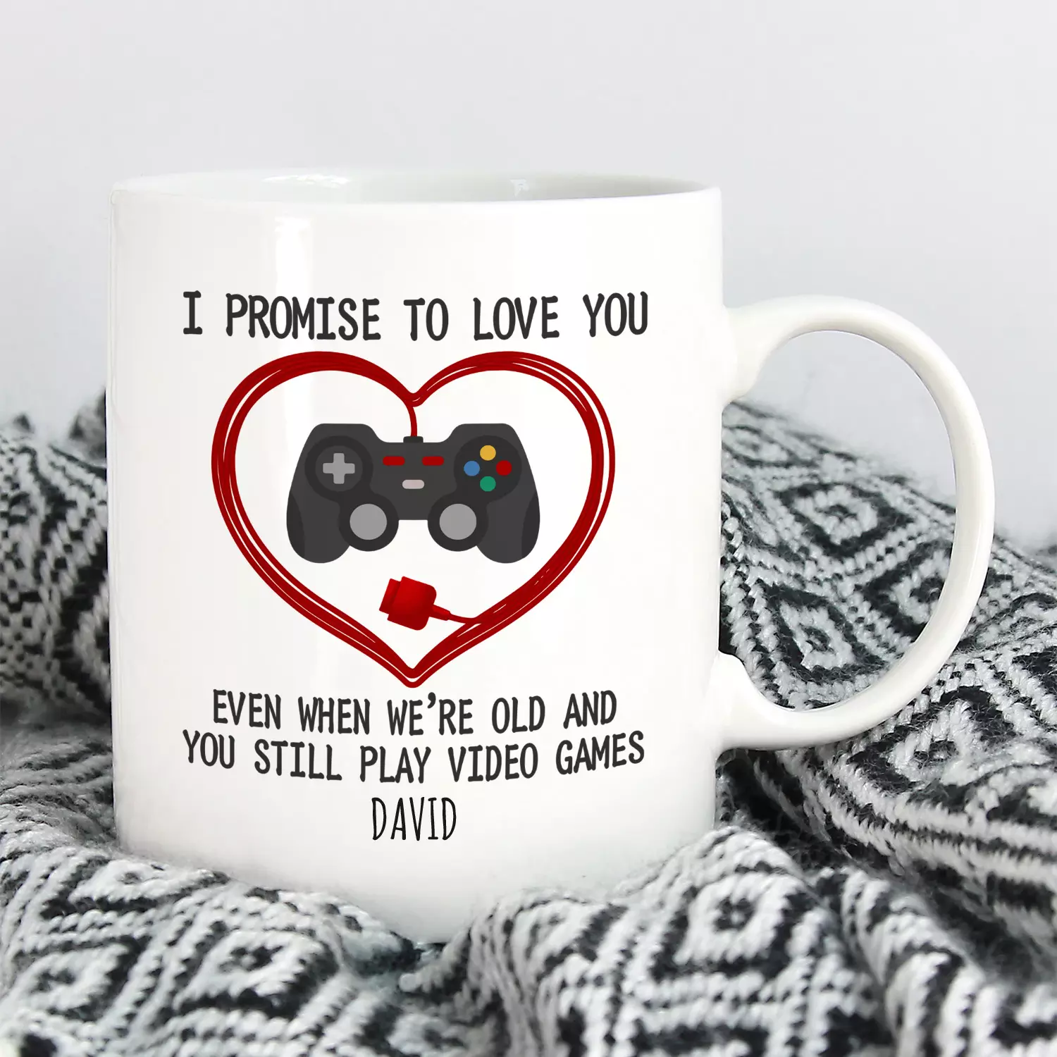 Let’s Shop Personalized I Promise To Love You Even When Old And You Till Play Video Games Mug – Funny Custom Video Game Mug!