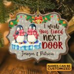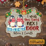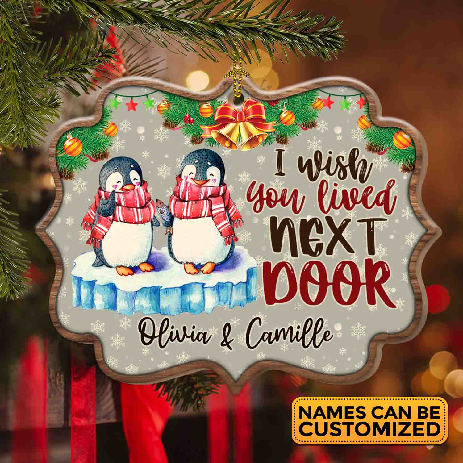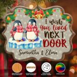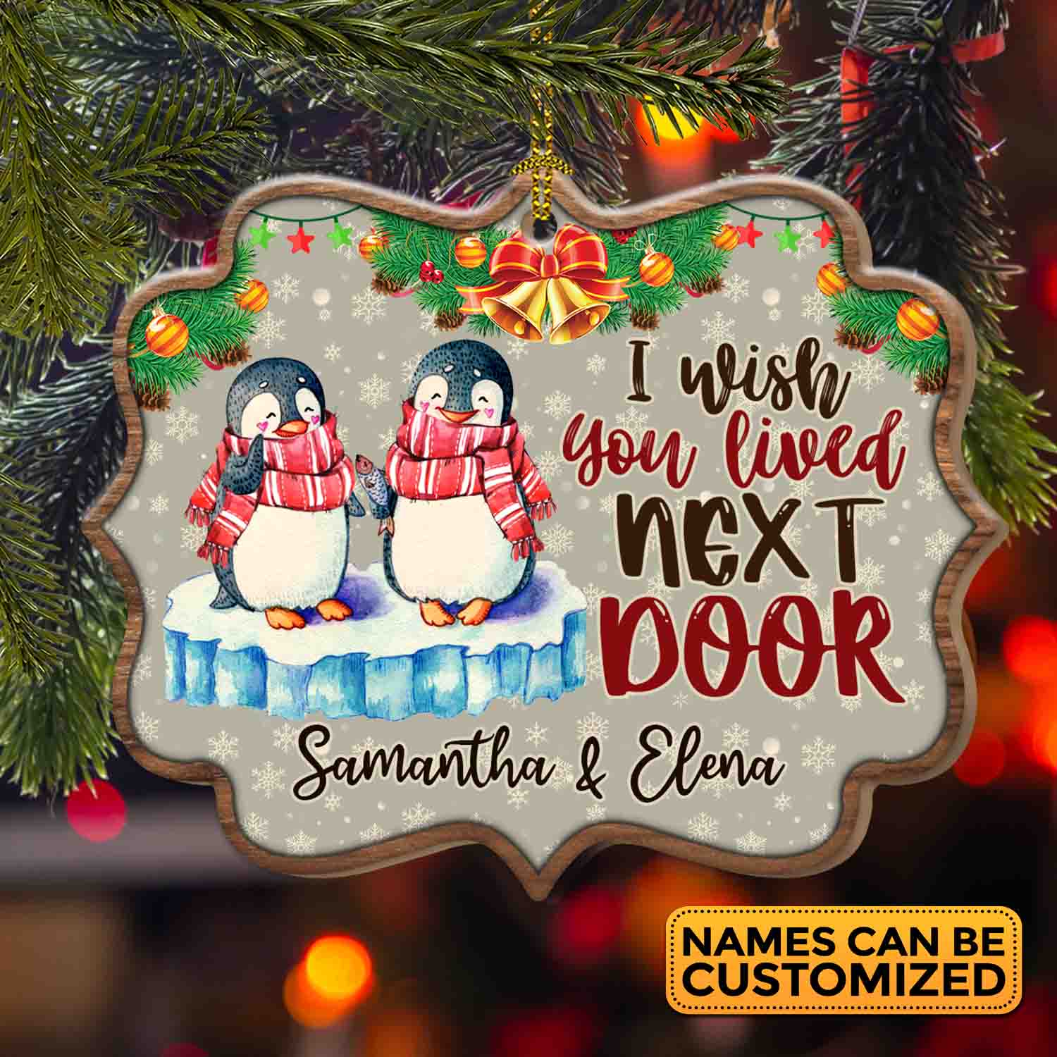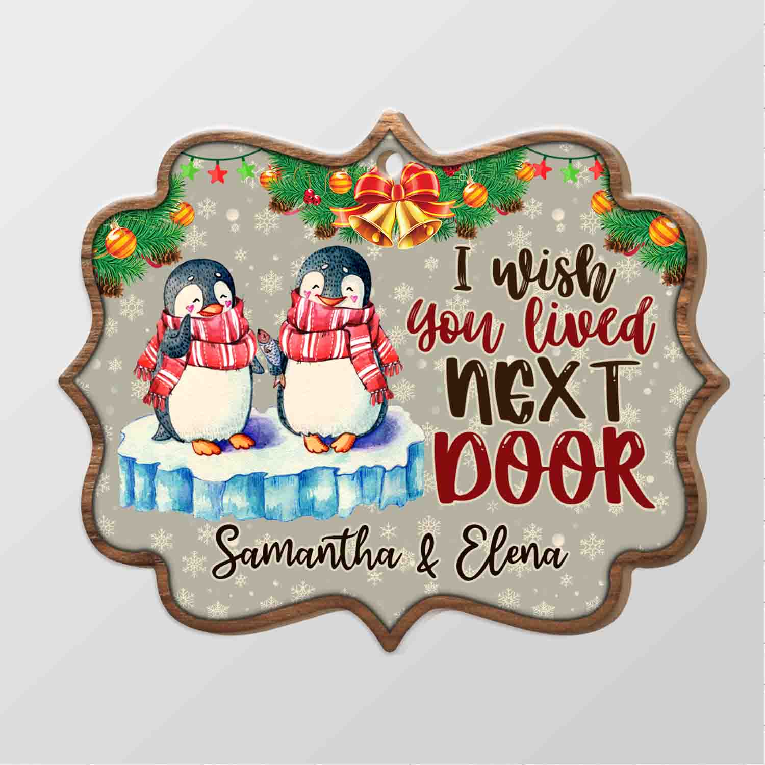 Let’s Shop Personalized I Wish You Lived Next Door Penguin Bestie Christmas Custom Shaped Wooden Christmas Ornament!