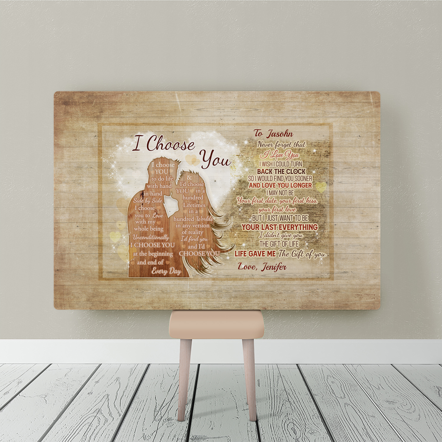 Are you spending too much time to find creative merchandise for you or suitable & special gifts for your mommy, your daddy, your son, your daughter, your children, your friends or someone you love? The struggle is over because we have various Couple Poster, Couples Wall Art, Canvas for Couples, I Choose You Poster, I Choose You Wall Art, I Choose You Wall Decor which will make perfect presents for your beloveds. In order to make your present stand out, we have created lots of unique and awesome customized photo gifts & personalized designs.