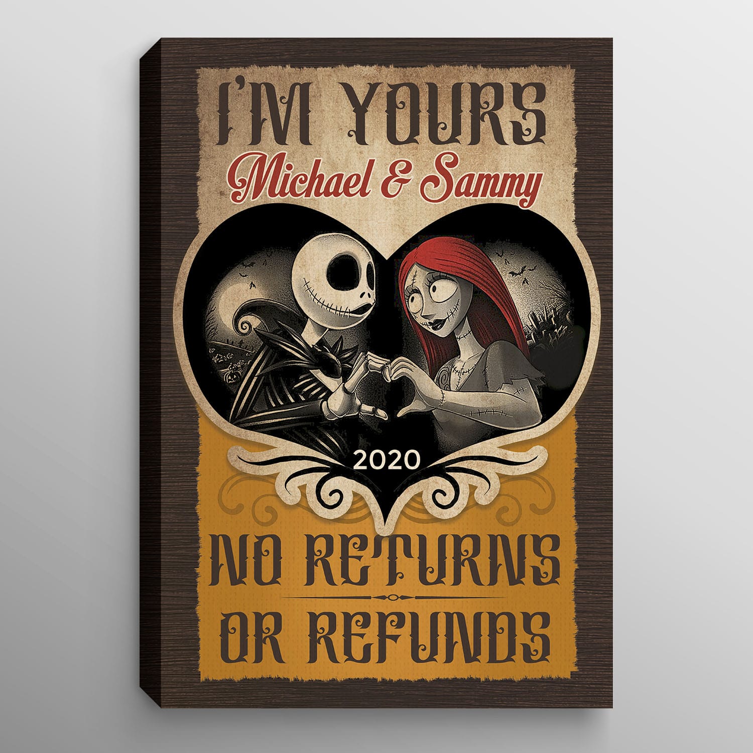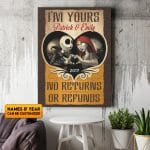 Let’s Shop Personalized I’m Yours No Returns or Refund Jack and Sally Nightmare Canvas Poster – Customized Couple Nightmare Wall Art Decor!