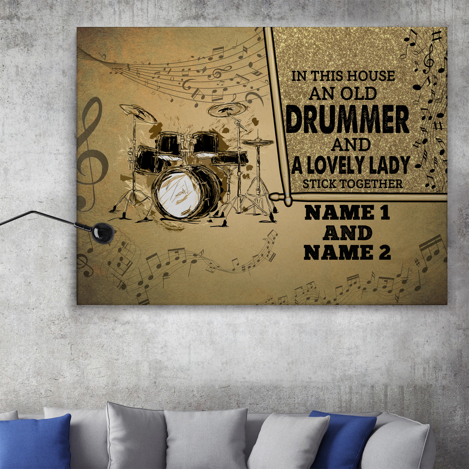 Let’s Shop Personalized In This House An Old Drummer And A Lovely Lady Gallery Framed Canvas Prints – Unframed Poster!