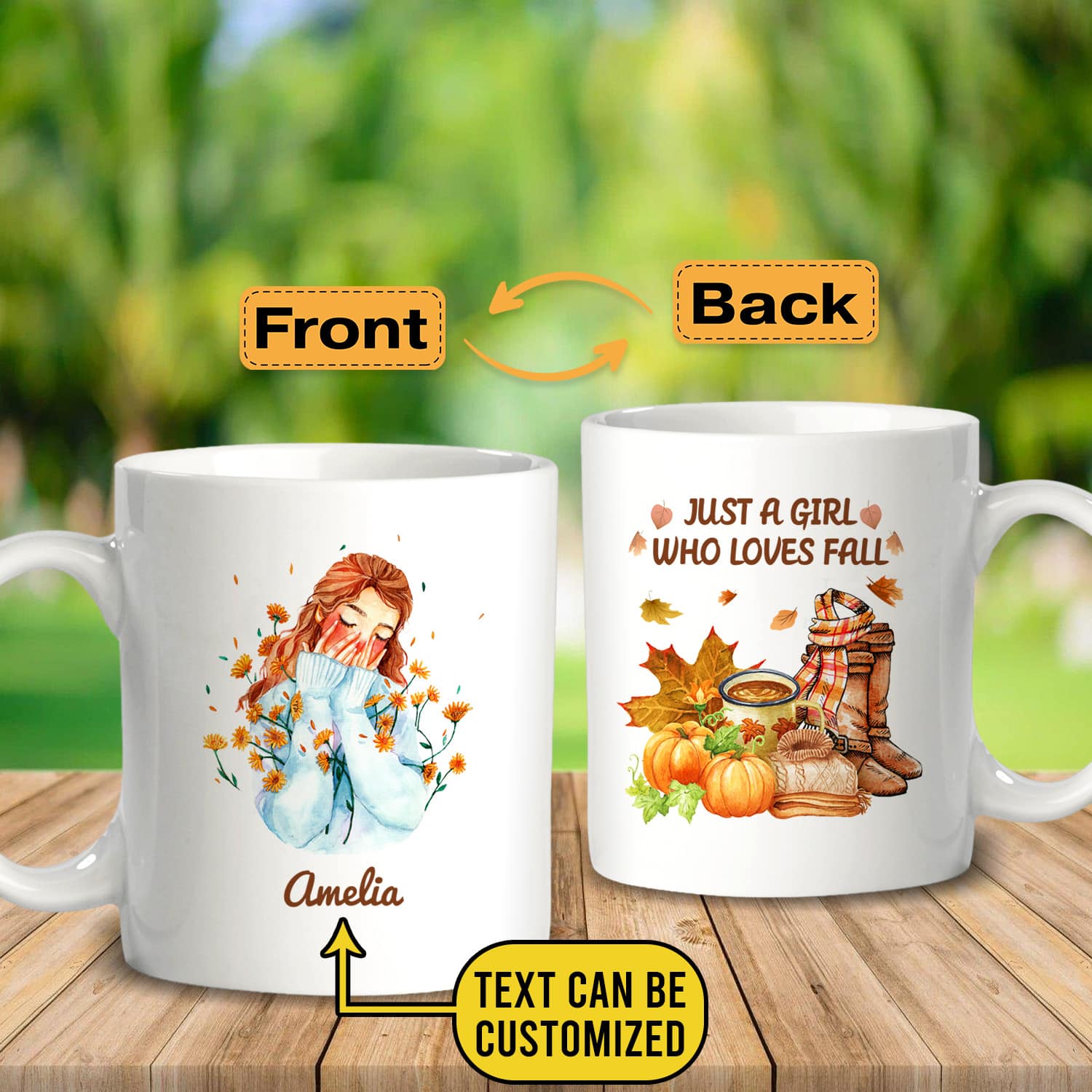 Let’s Shop Personalized Just A Girl Who Loves Fall Coffee Mug – Custom Fall Mug – Autumn Travel Bottle!