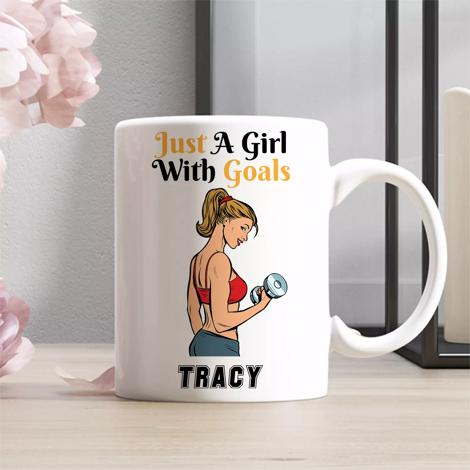 Let’s Shop Personalized Just A Girl With Goals Gym Weight Lifting Workout Mug – Gift for Gym Lover – Fitness Lover Gift!