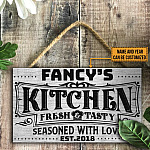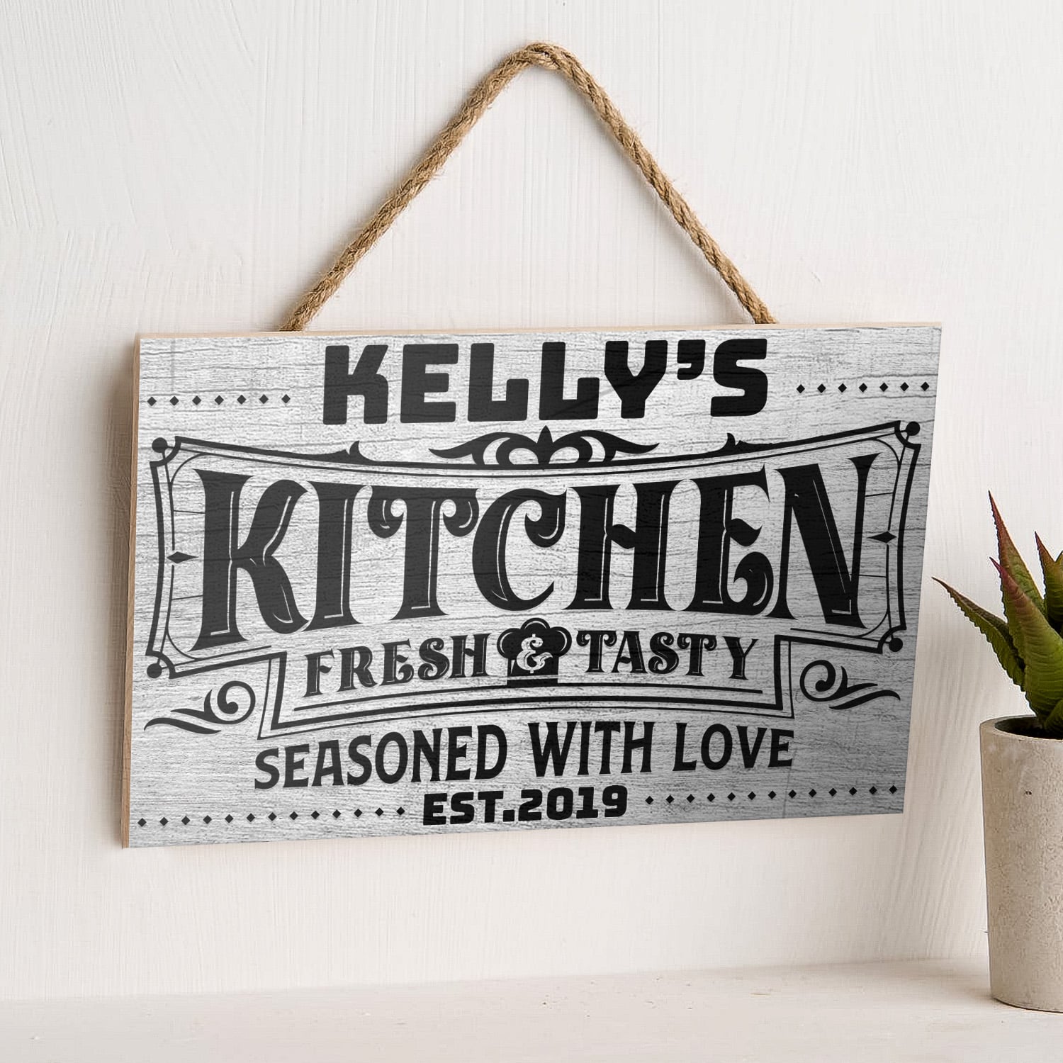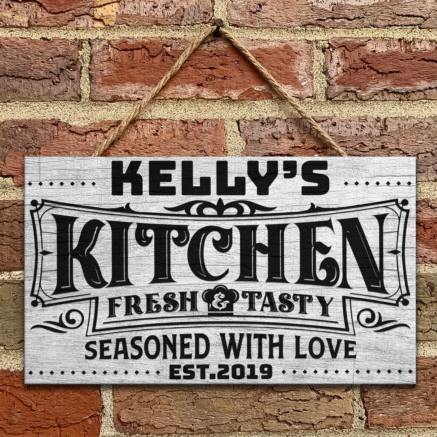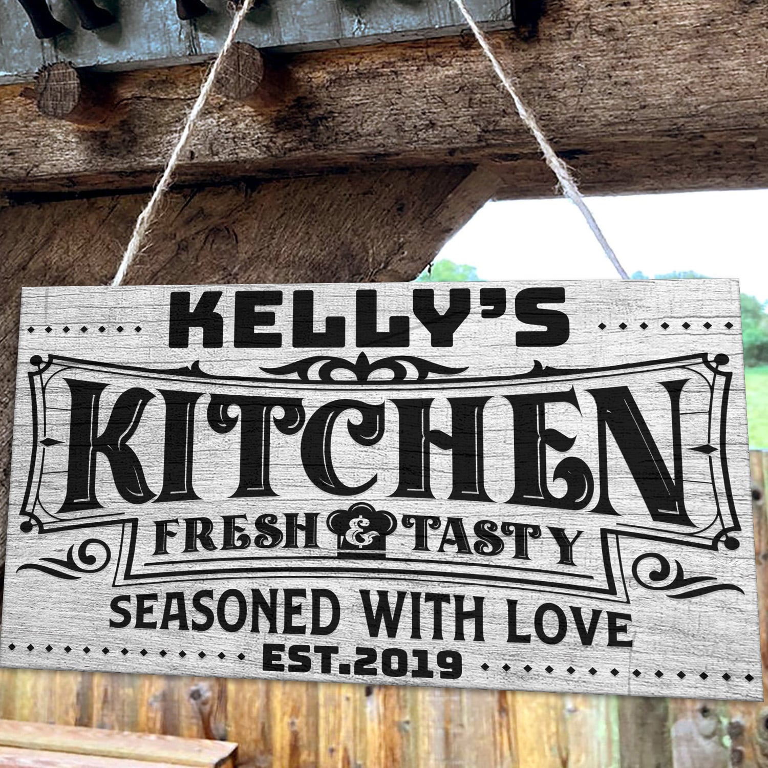 Let’s Shop Personalized Name Kitchen Fresh and Tasty Seasoned With Love Decorative Rectangle Wooden Door Sign – Kitchen Porch Sign Decor Farmhouse!