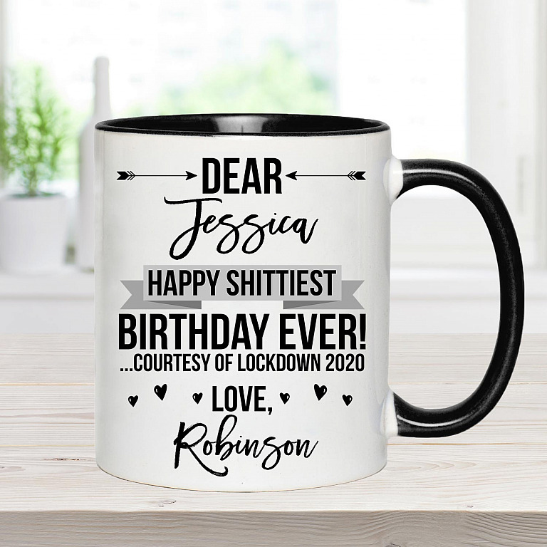 Personalized Happy Shittiest Birthday Ever Courtesy of Lockdown 2020 Accent Coffee Mug – Quarantine Birthday Gift
