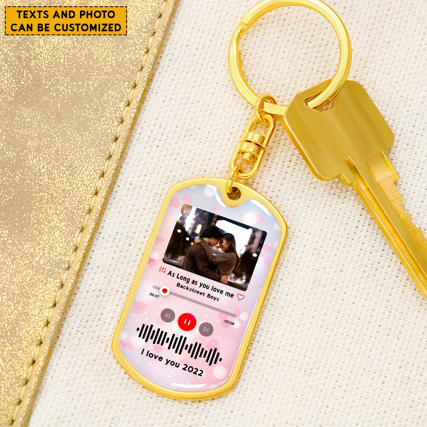 Let’s Shop Personalized Song With Optional QR Song Code Dog Tag Keychain – Custom Photo Love Couple Keychain!
