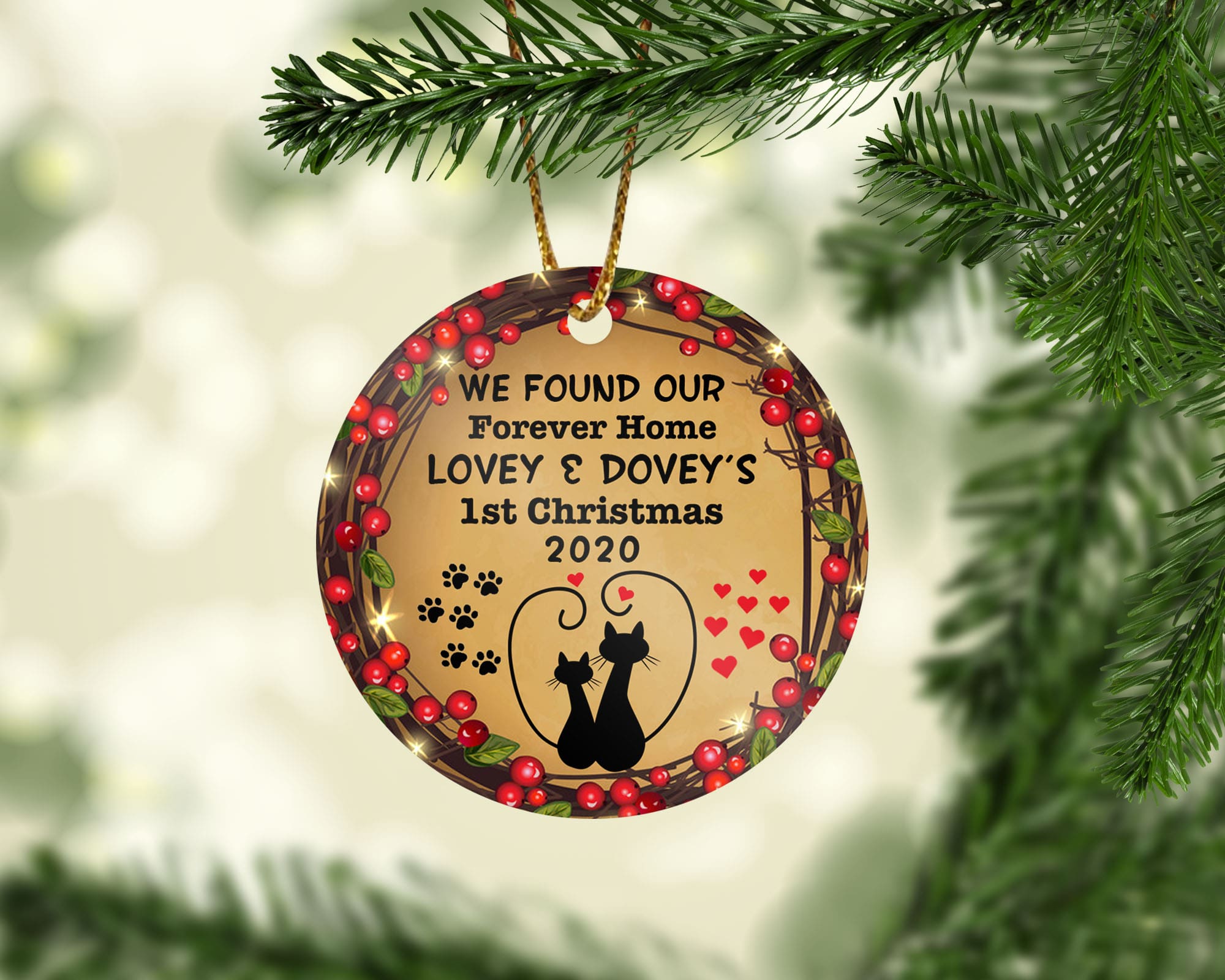 Let’s Shop Customized We Found Our Forever Home Lovey Dovey Decorative Christmas Ornament – Holiday Flat Circle Ornament!