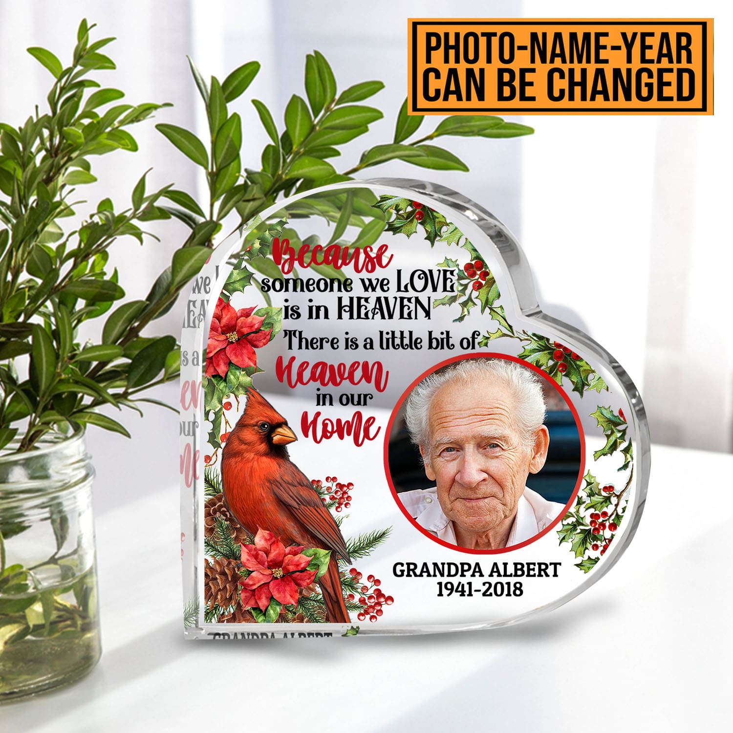 Let’s Shop Personalized Photo Because Someone We Love Is In Heaven Gifts for Loss of Father Mother Heart Acrylic Plaque!