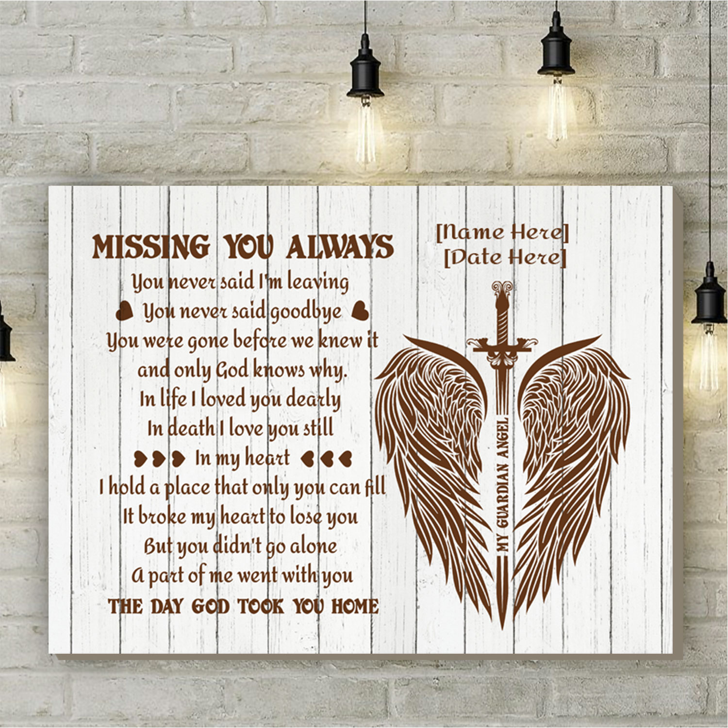 Let’s Shop Personalized Missing You Always You Never Said I’m Leaving Angel Wings Memorial Framed Canvas – Unframed Poster!