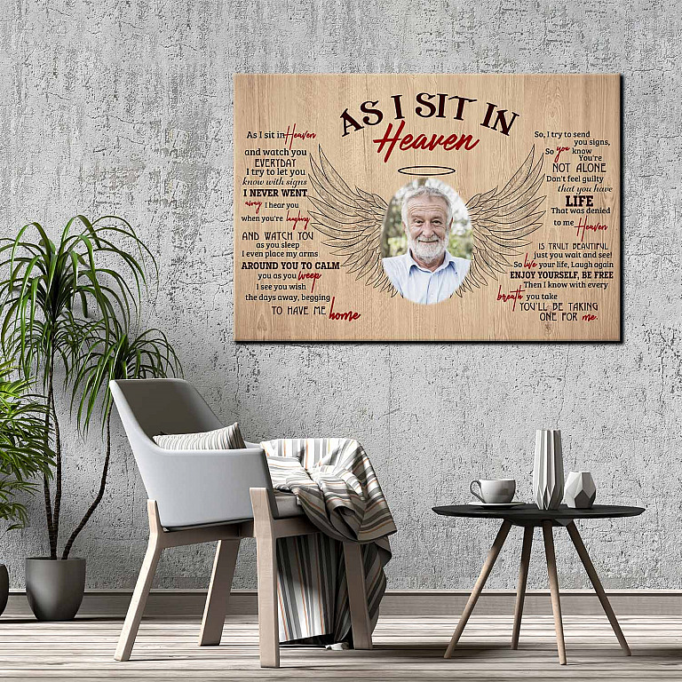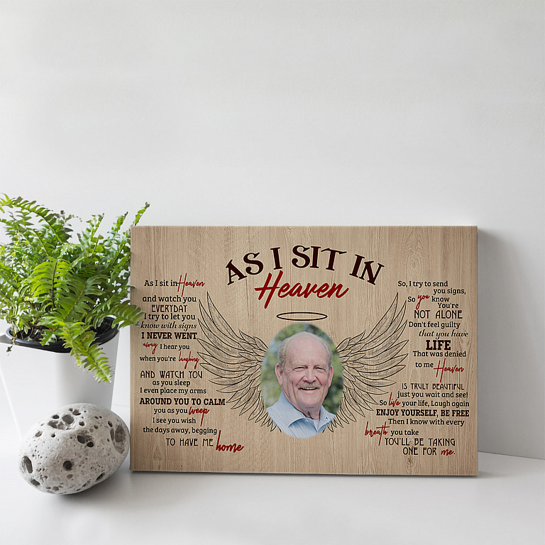 Let’s Shop Personalized Photo As I Sit In Heaven And Watch You Everyday Memorial Framed Canvas Prints – Unframed Poster!
