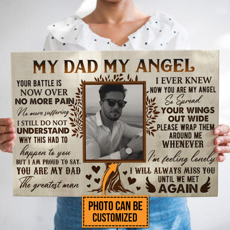 Let’s Shop Personalized Photo My Dad My Angel Your Battle Is Now Over Sympathy Gifts Framed Canvas – Unframed Poster!