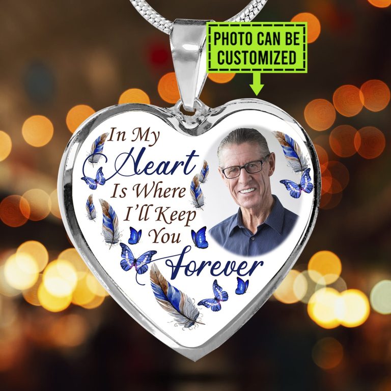 Let’s Shop Custom Photo In My Heart Is Where I’ll Keep You Forever Feather Butterfly Luxury Heart Pendant Necklace!
