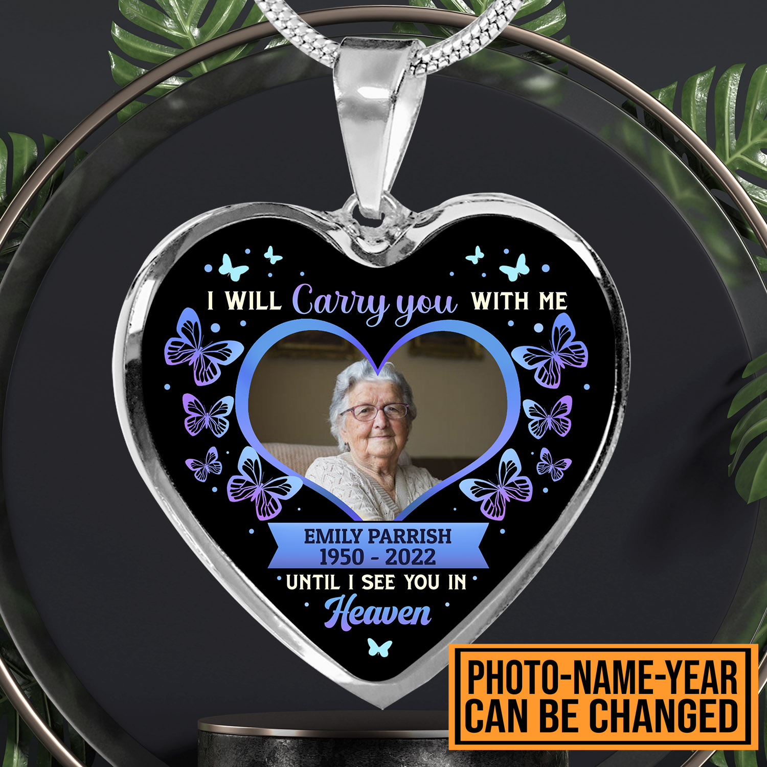 Let’s Shop Personalized Photo I Will Carry You With Me Until I See You In Heaven Heart Pendant Necklace!