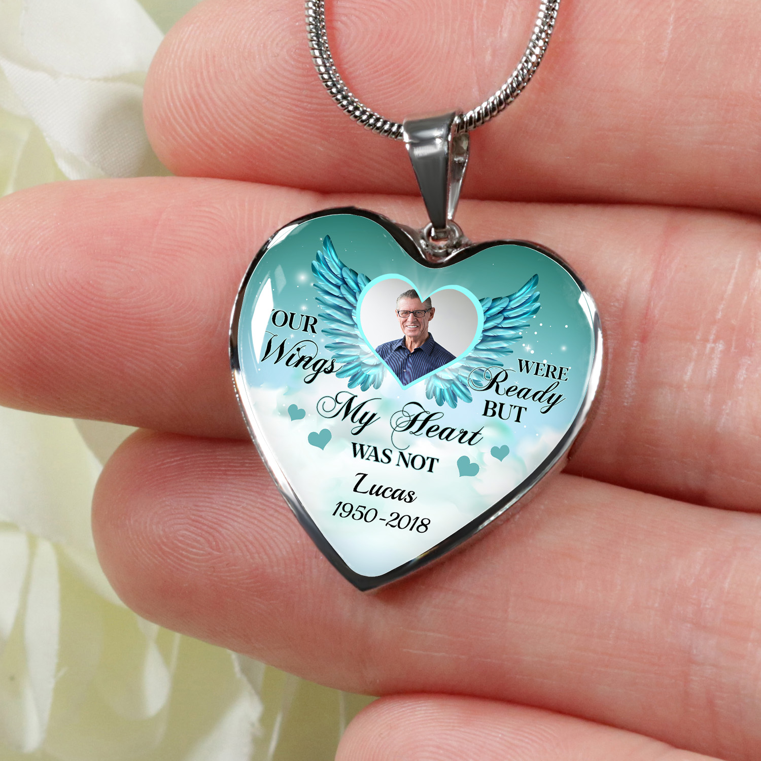 Let’s Shop Personalized Photo Your Wings Were Ready But My Heart Was Not Memorial Luxury Heart Pendant Necklace!
