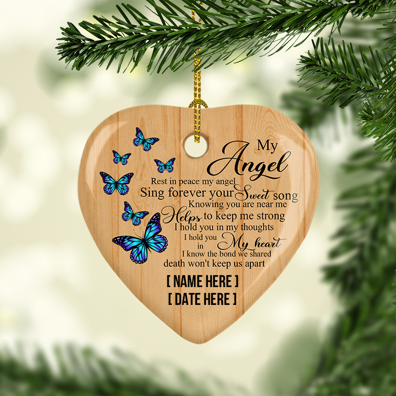 Let’s Shop Personalized Butterfly Rest In Peace My Angel Sing Forever Your Sweet Song Memorial Remembrance Heart Ornament!