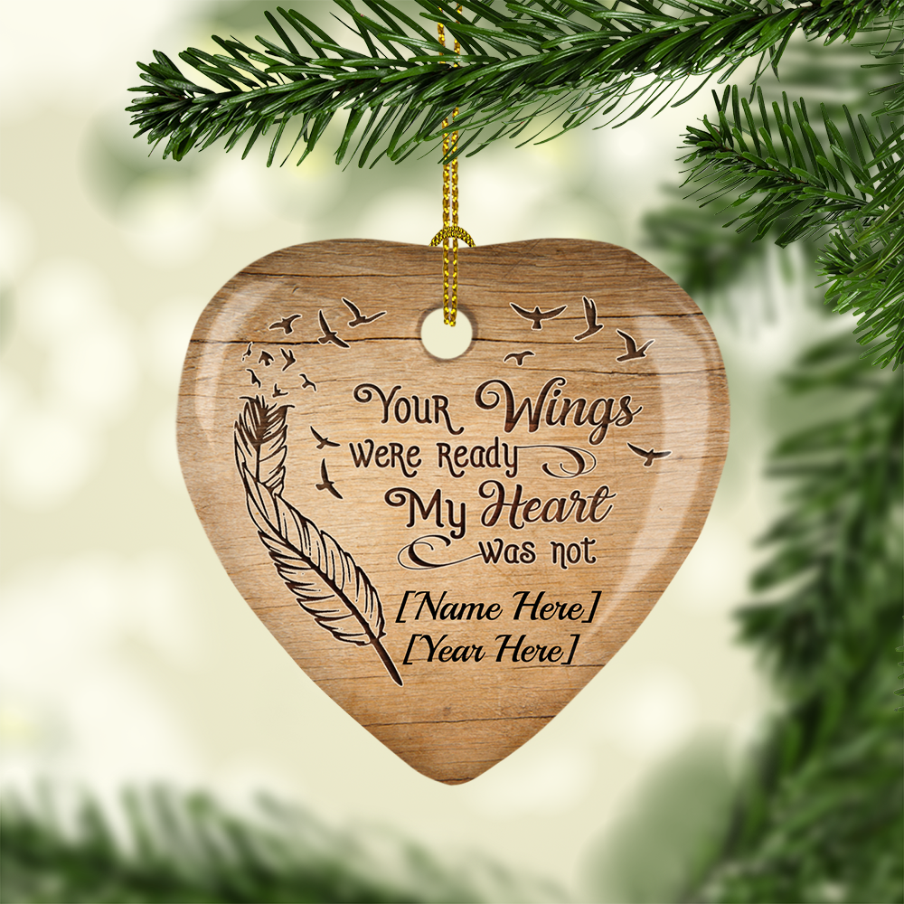 Personalized Your Wings Were Ready My Heart Was Not Ornament – Flat Heart Porcelain Ceramic Ornament