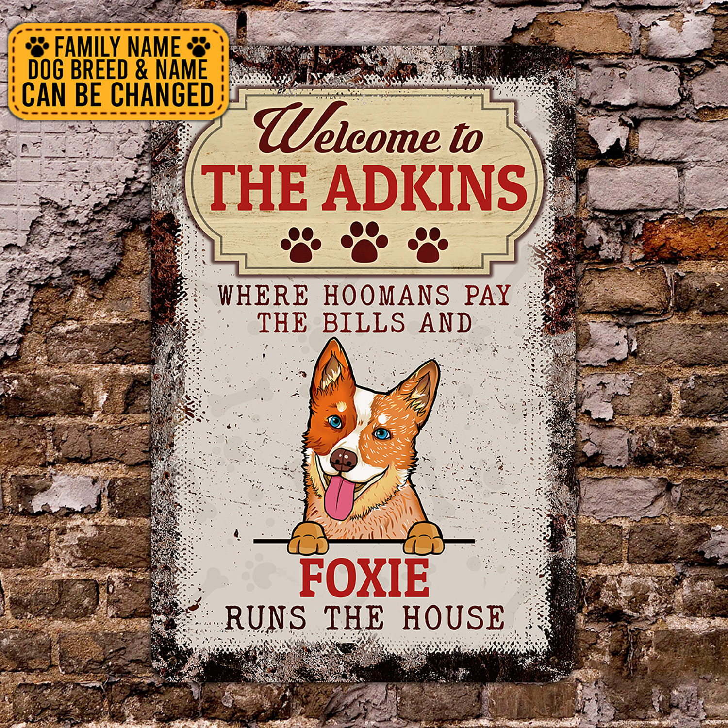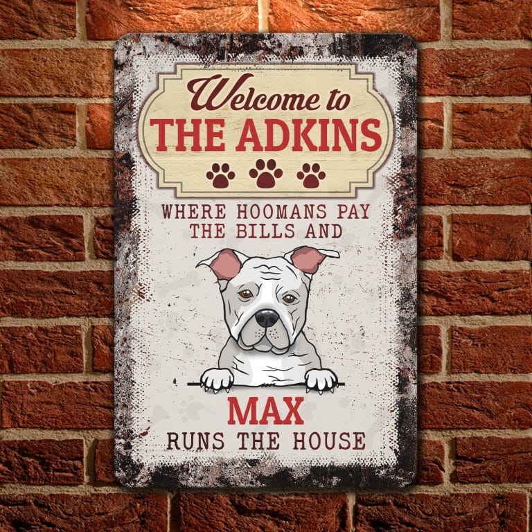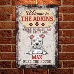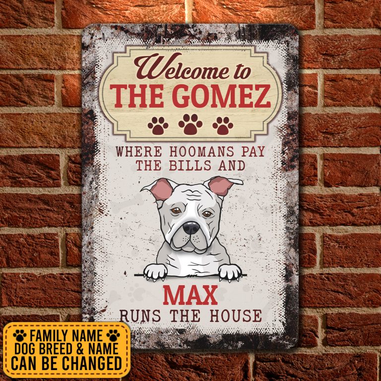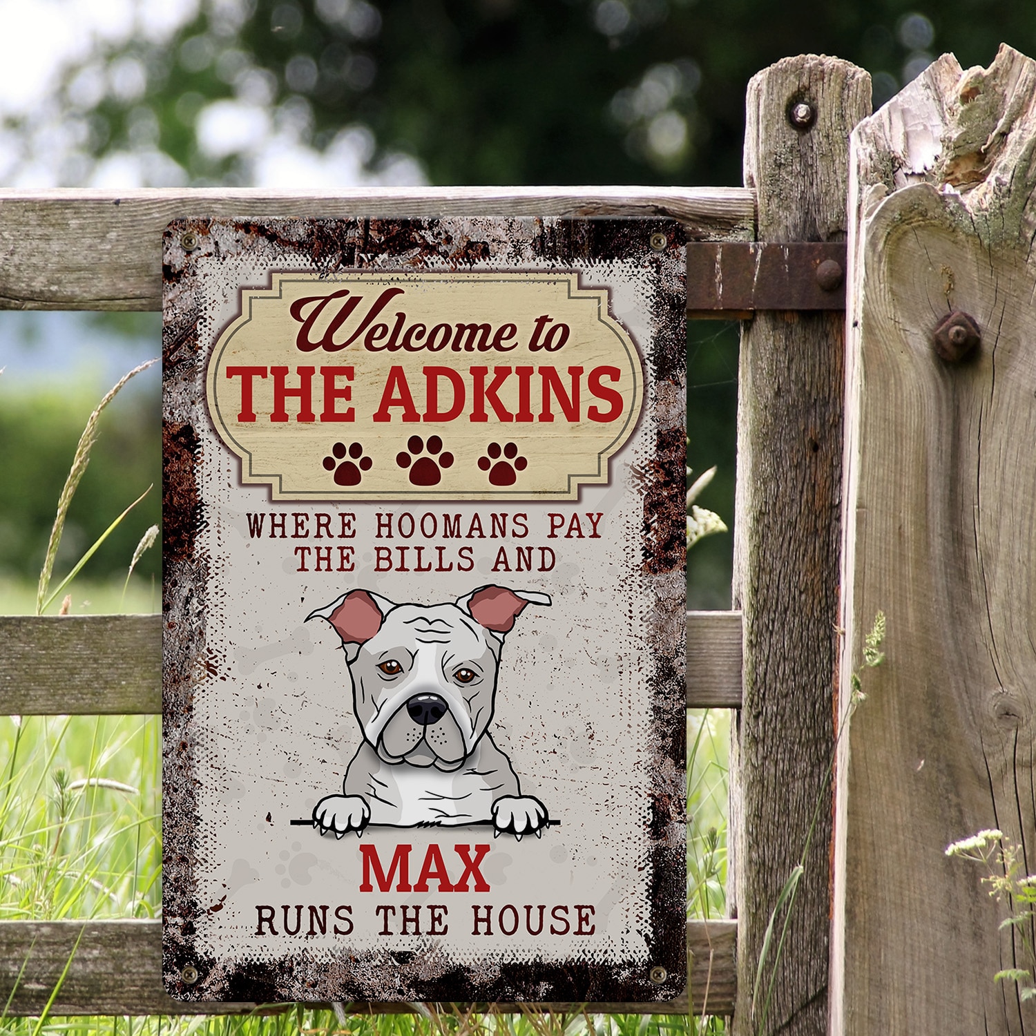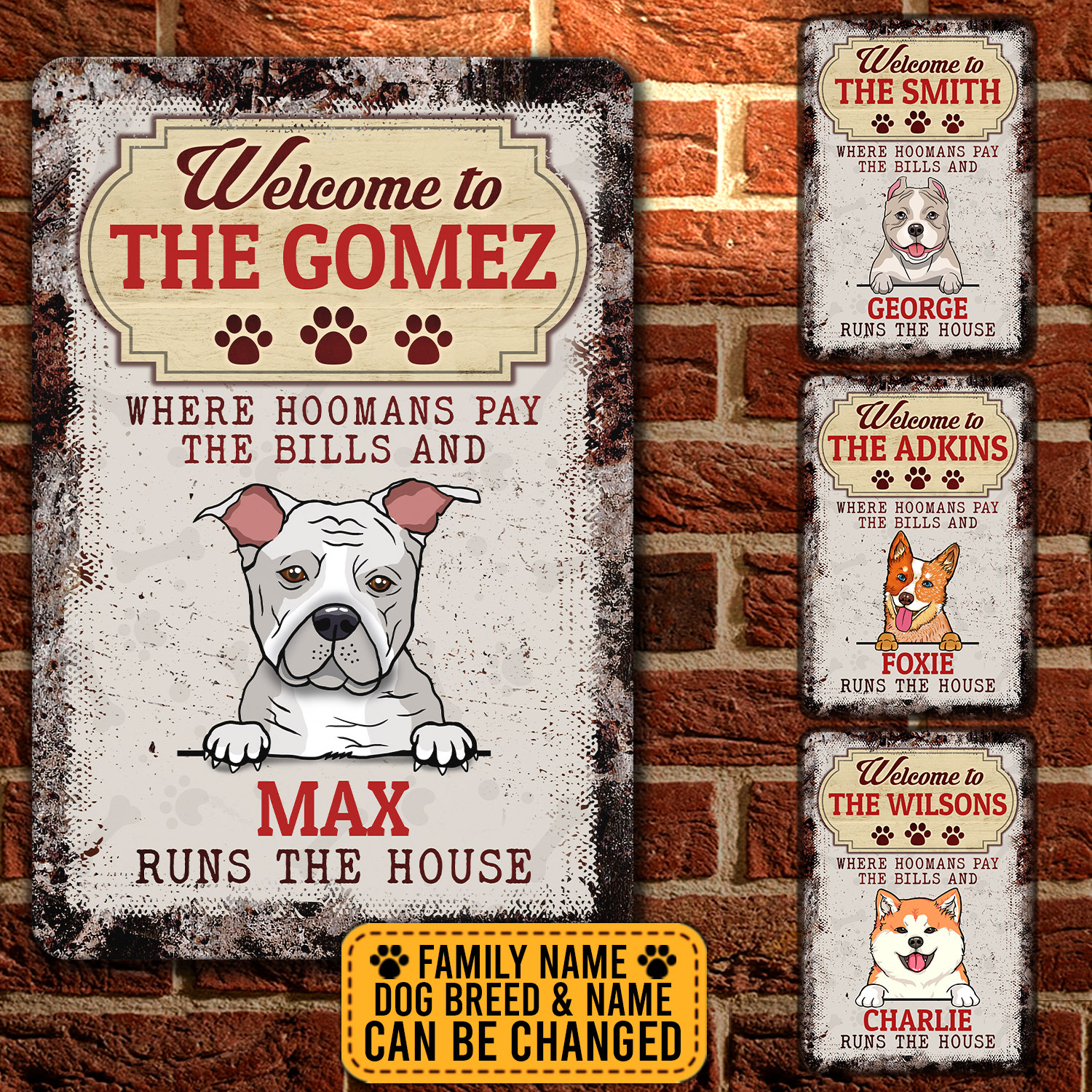 Let’s Shop Personalized Welcome To Where Hoomans Pay The Bills And Dog Runs The House Funny Metal Sign Indoor Outdoor Decor!