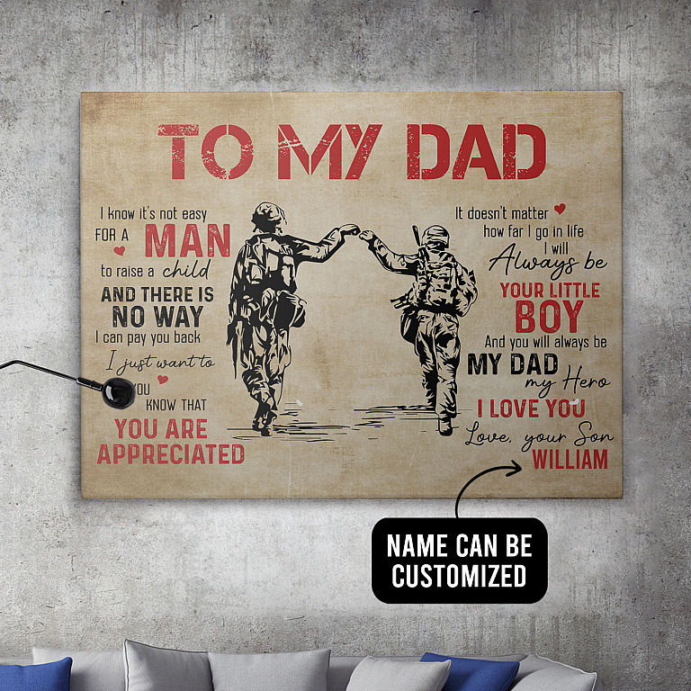 Let’s Shop Personalized Military Son To My Dad I Know It’s Not Easy For A Man To Raise A Child Army Soldier Canvas!
