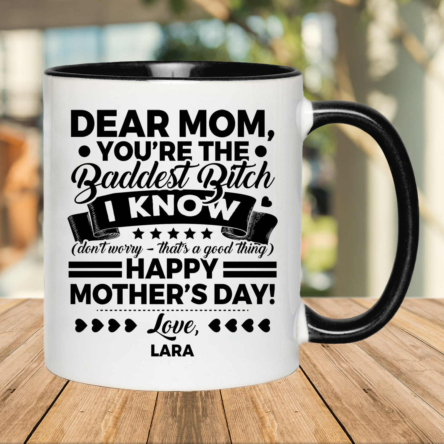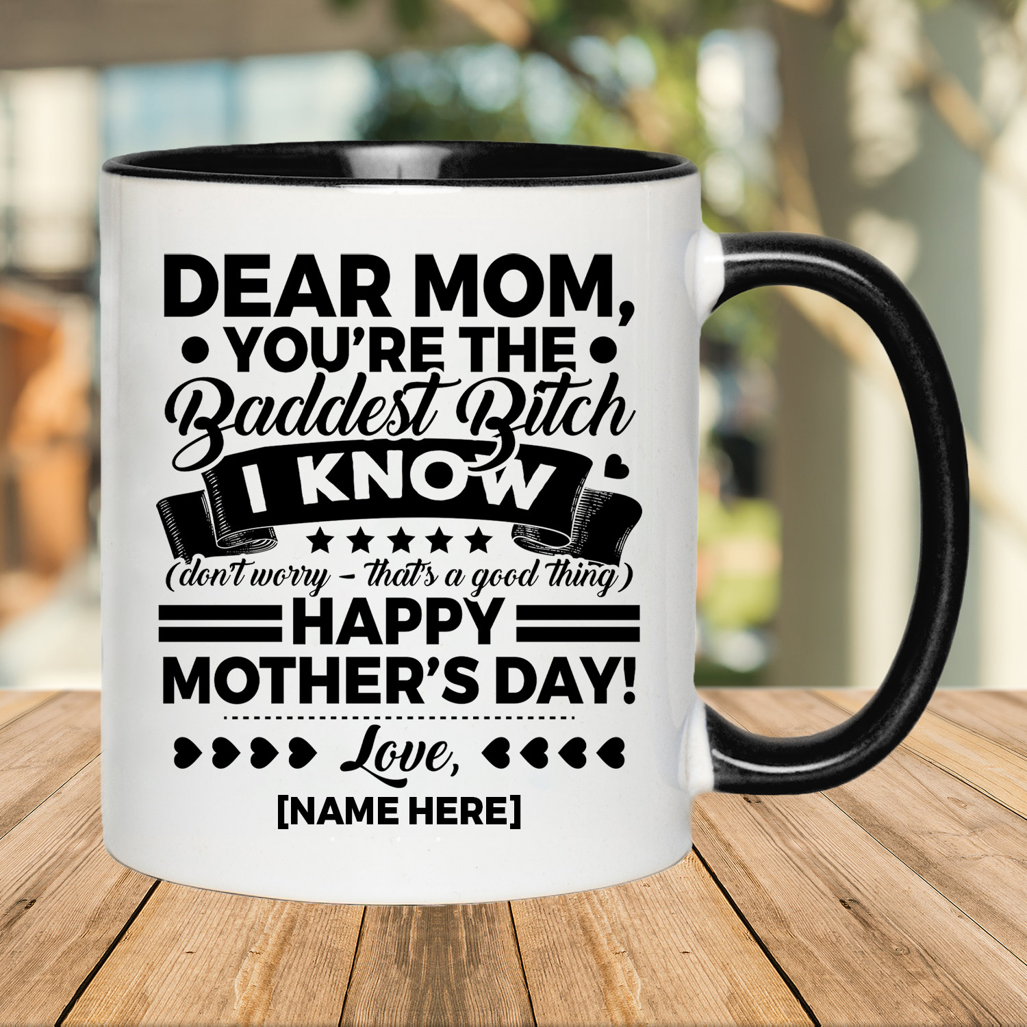 Let’s Shop Personalized Dear Mom You’re The Baddest Bitch I Know Happy Mother’s Day Accent Mug – Ceramic Coffee Mug!