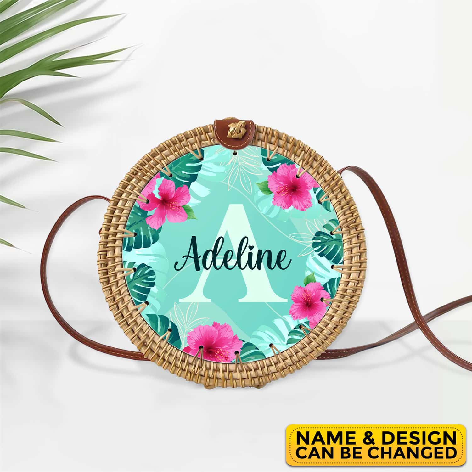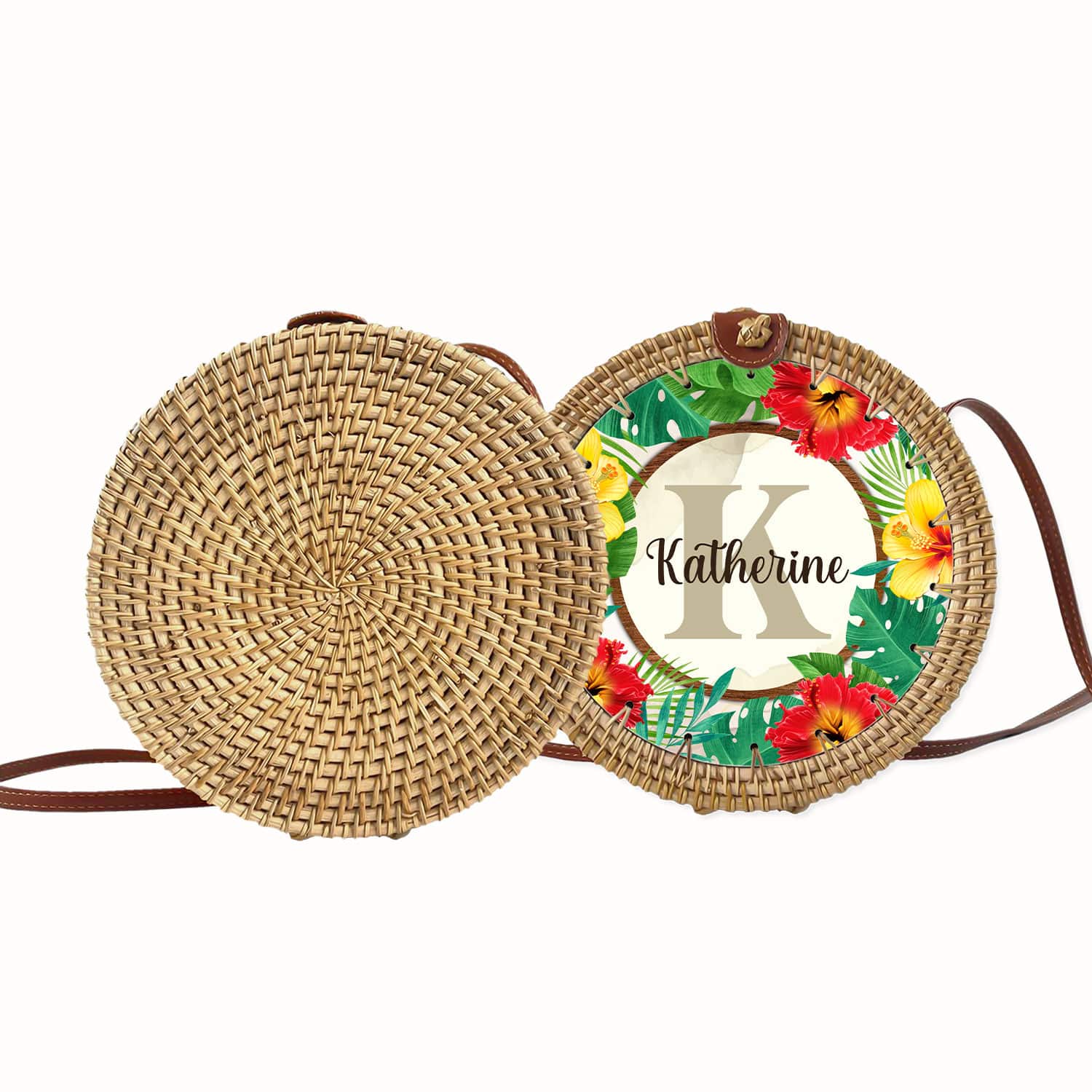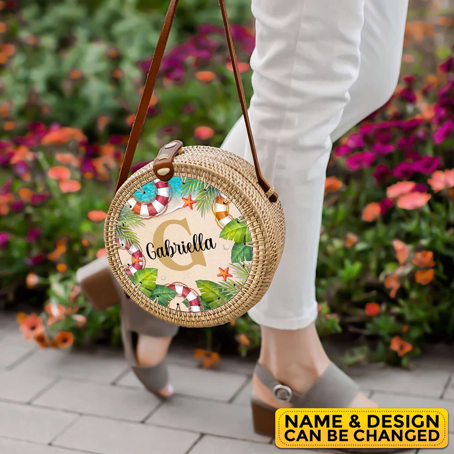 Let’s Shop Personalized Monogram Name Style Summer Hawaiian Tropical Rattan Bag For Women, Boho Summer Bag!
