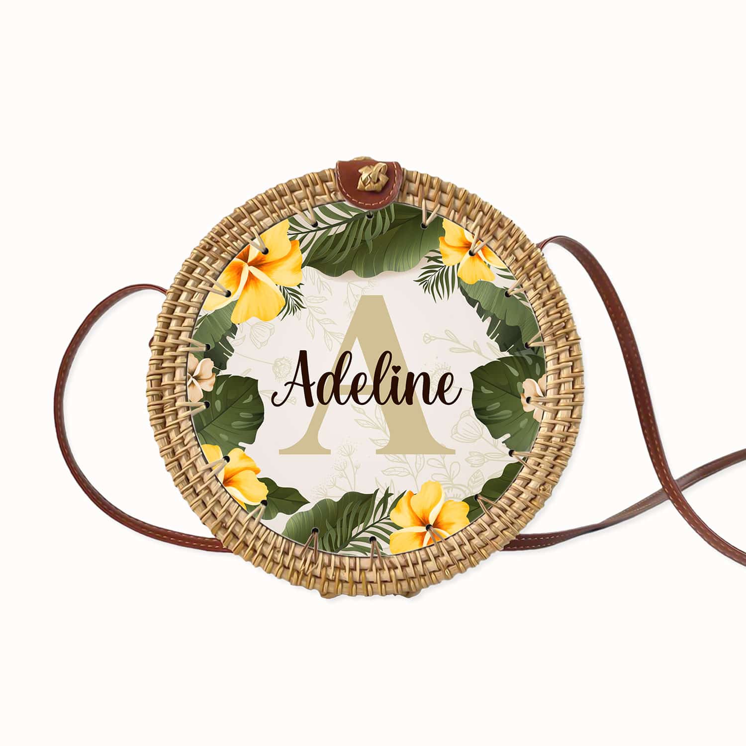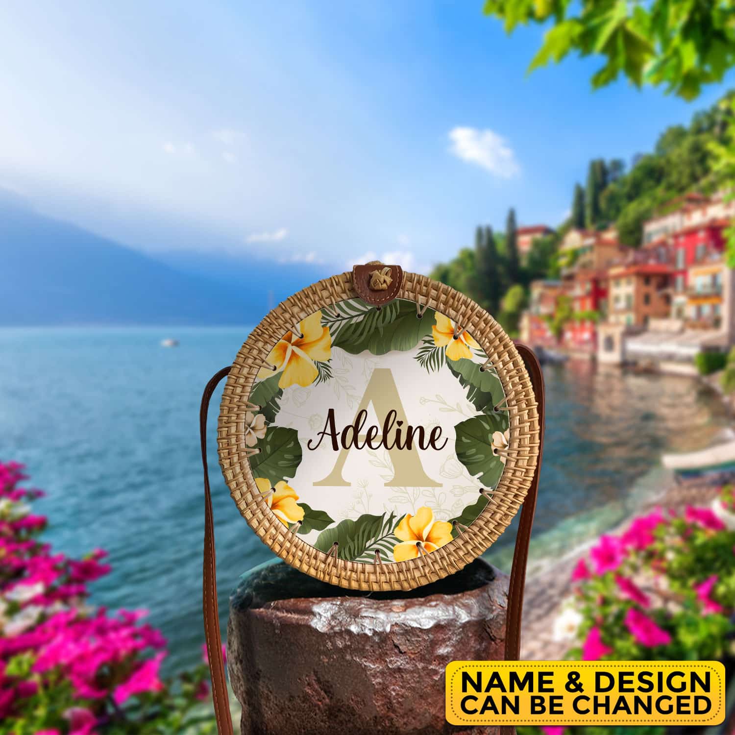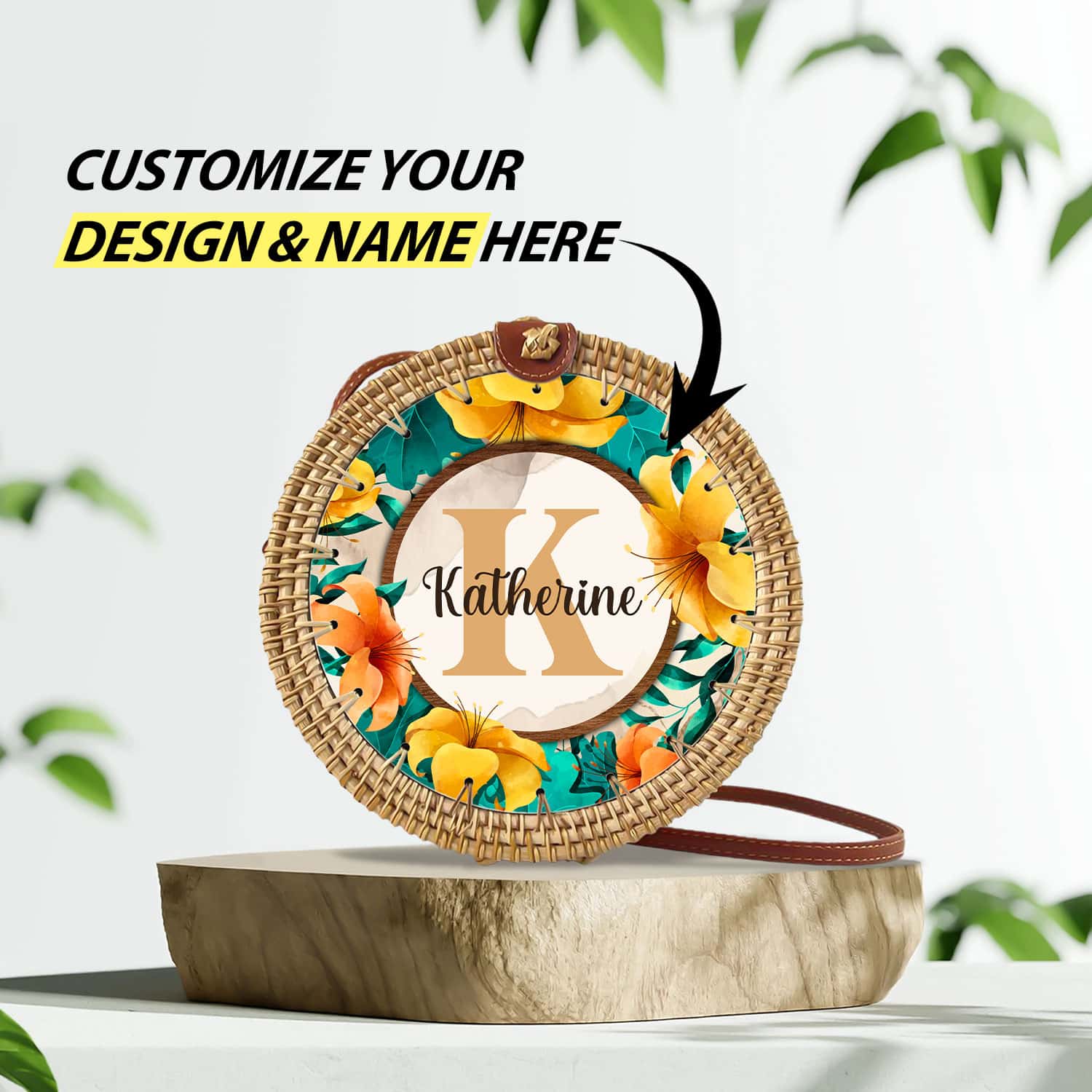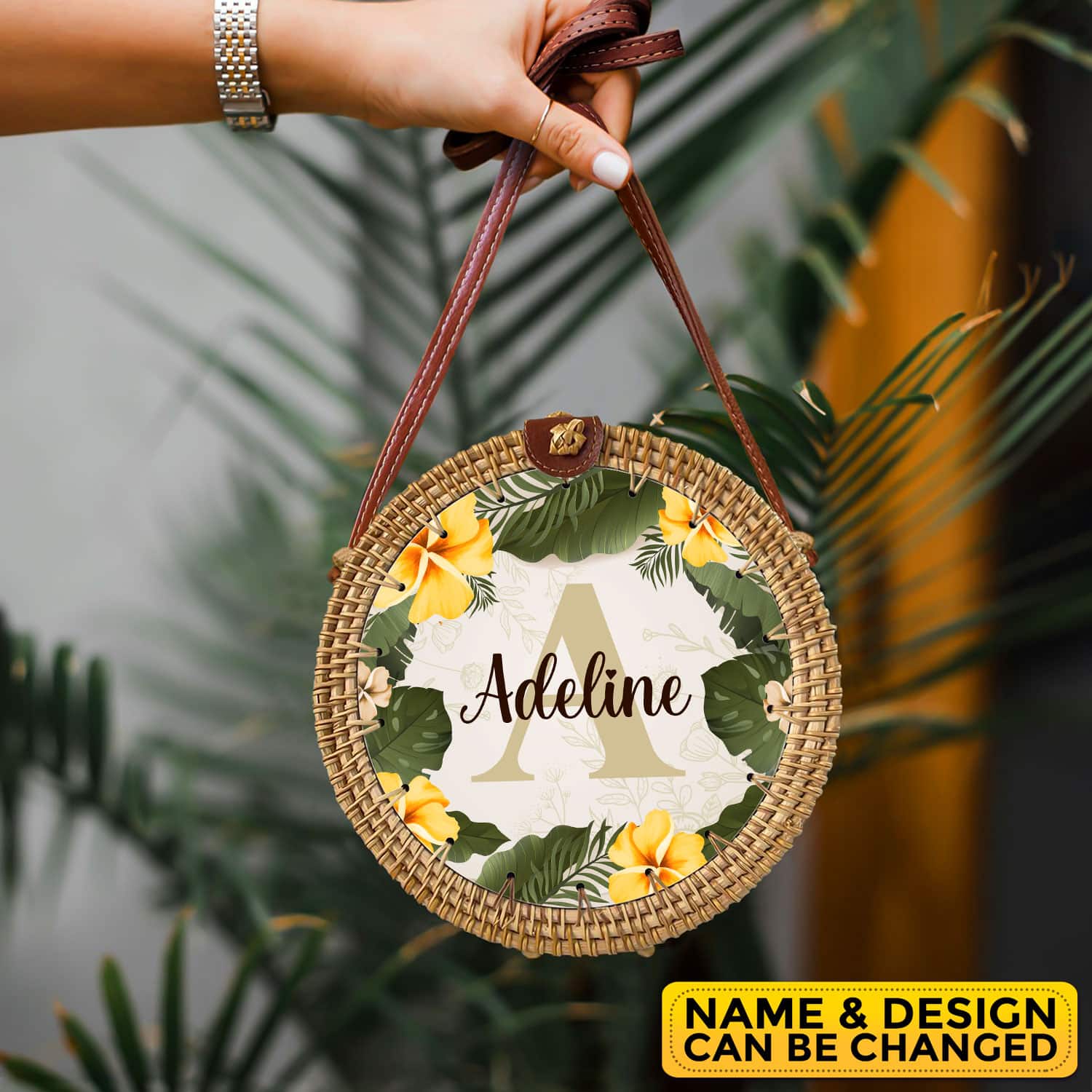 Let’s Shop Personalized Monogram Name Style Summer Hawaiian Tropical Rattan Bag For Women, Boho Summer Bag!