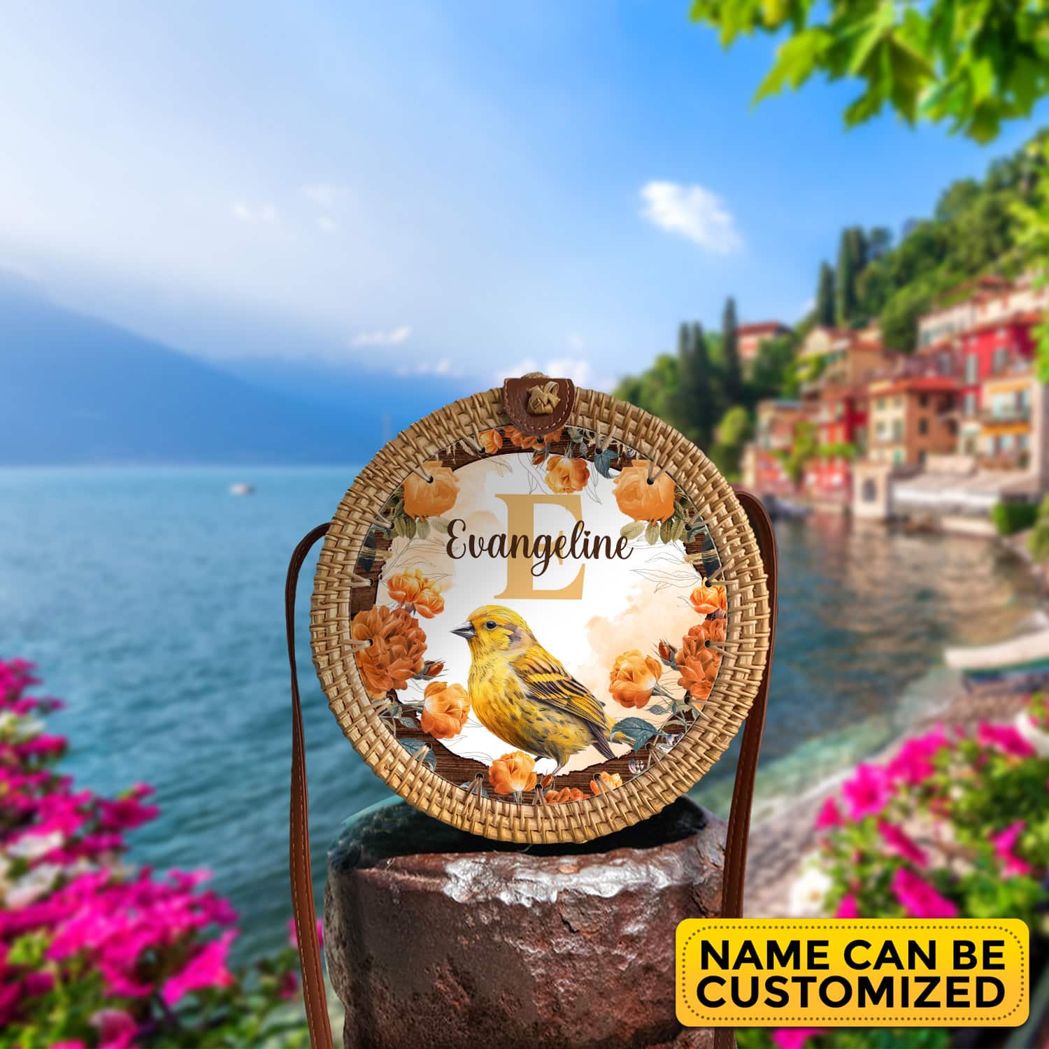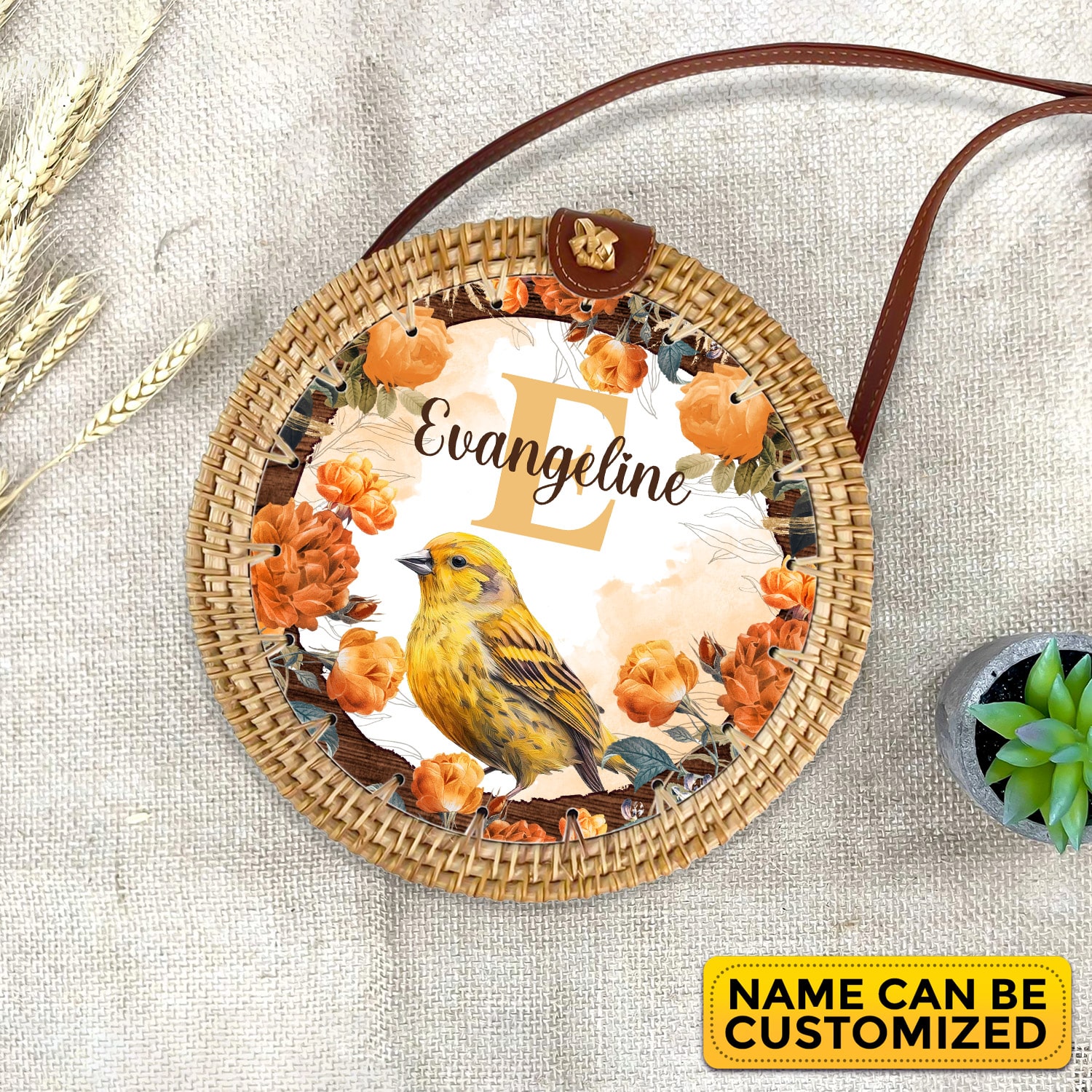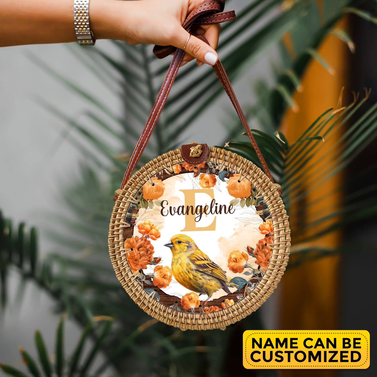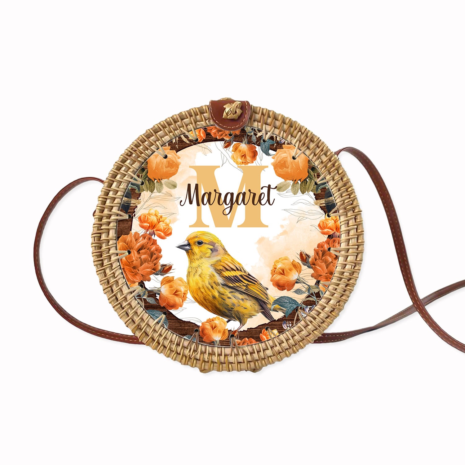 Let’s Shop Personalized Monogram Name Summer Canary Bird Hawaiian Tropical Rattan Bag For Women, Boho Summer Bag!