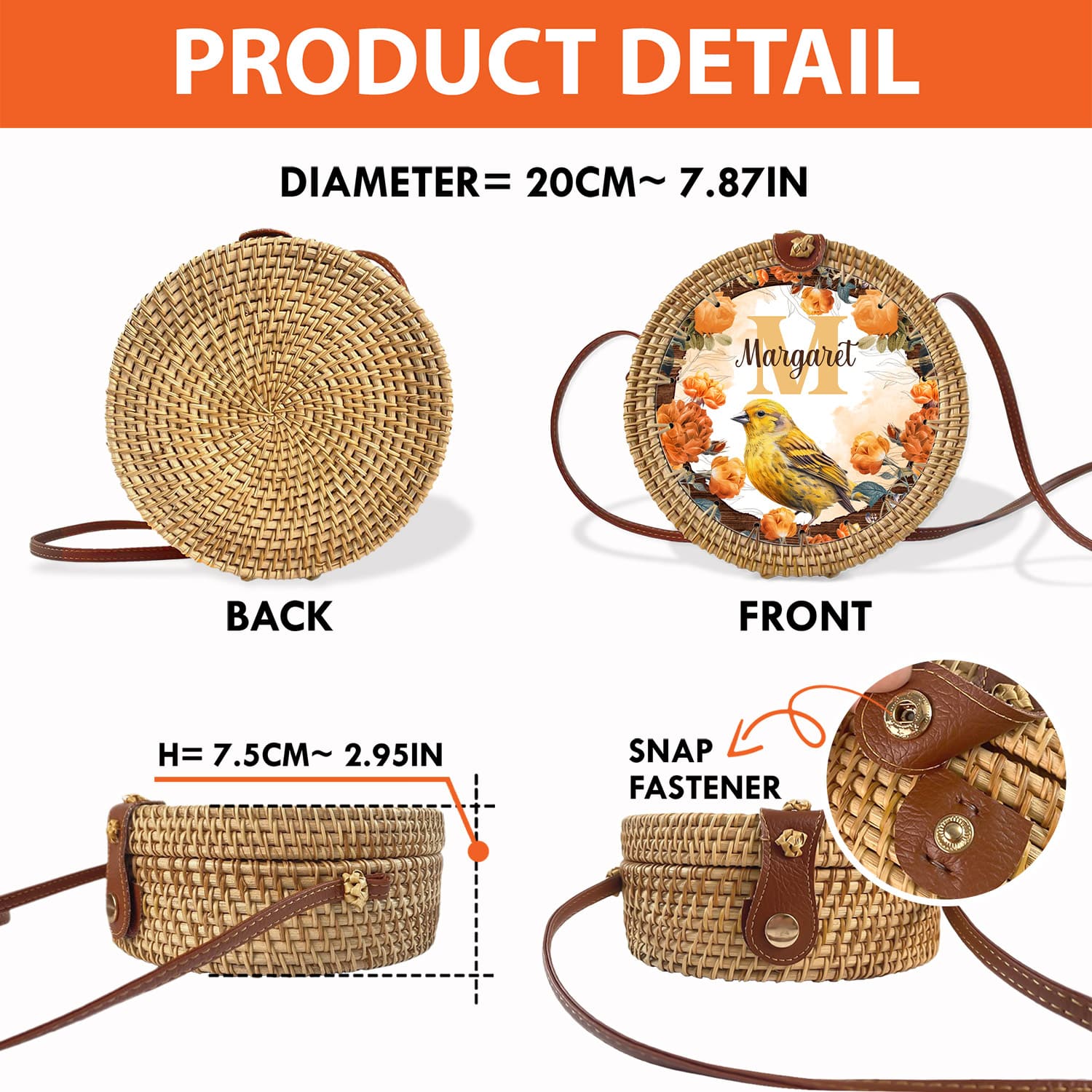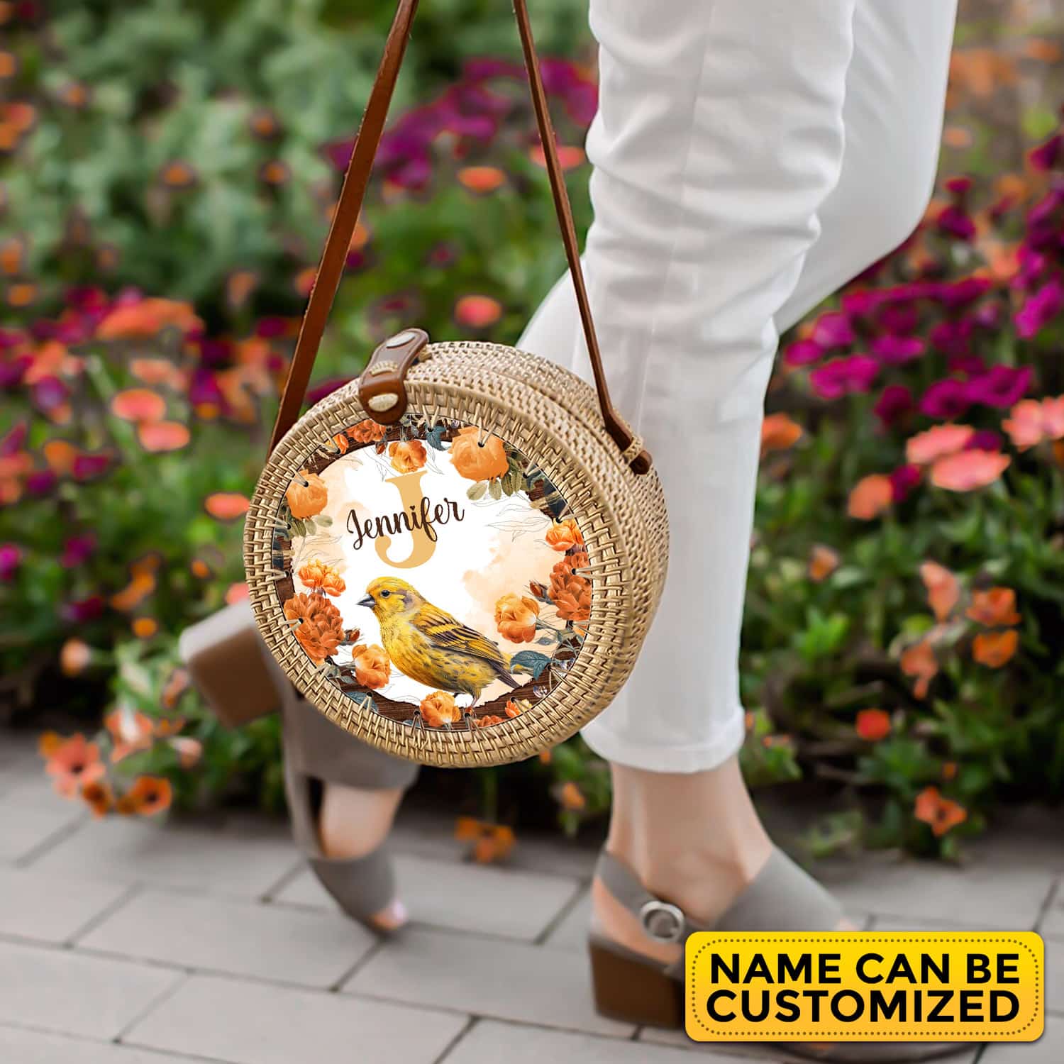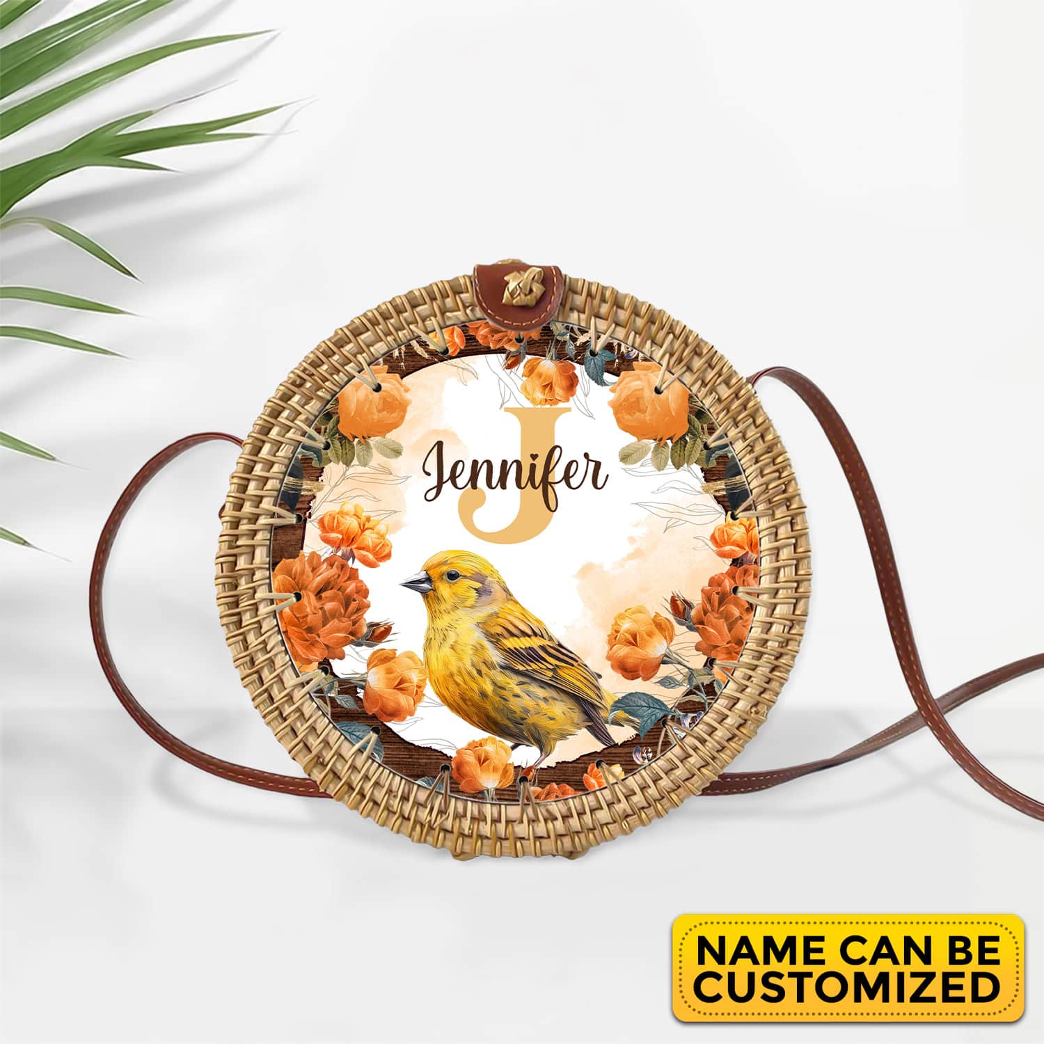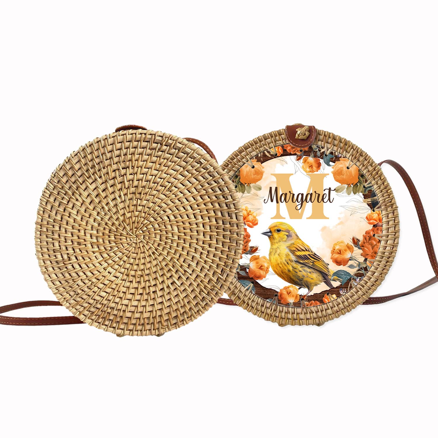 Let’s Shop Personalized Monogram Name Summer Canary Bird Hawaiian Tropical Rattan Bag For Women, Boho Summer Bag!