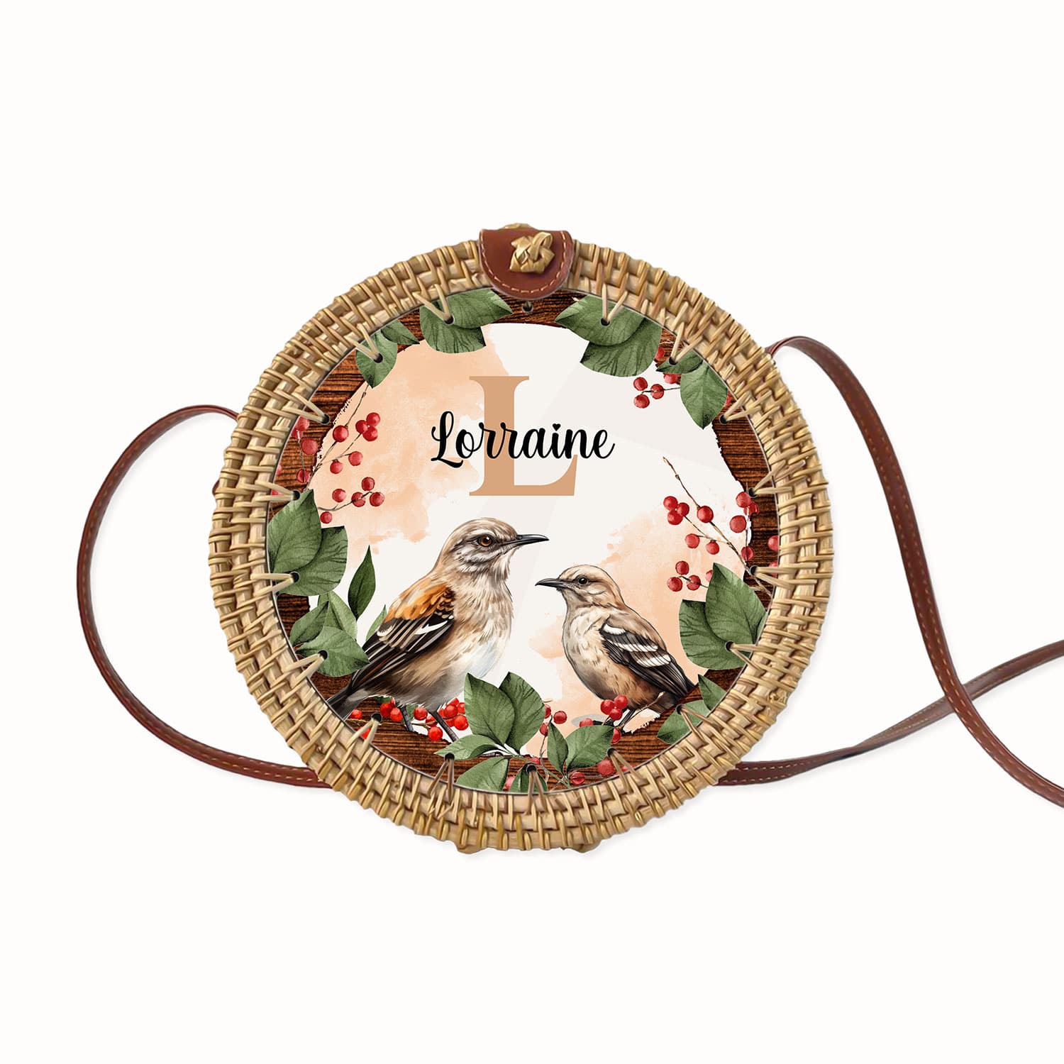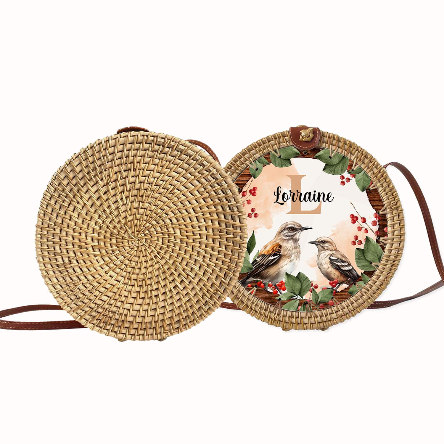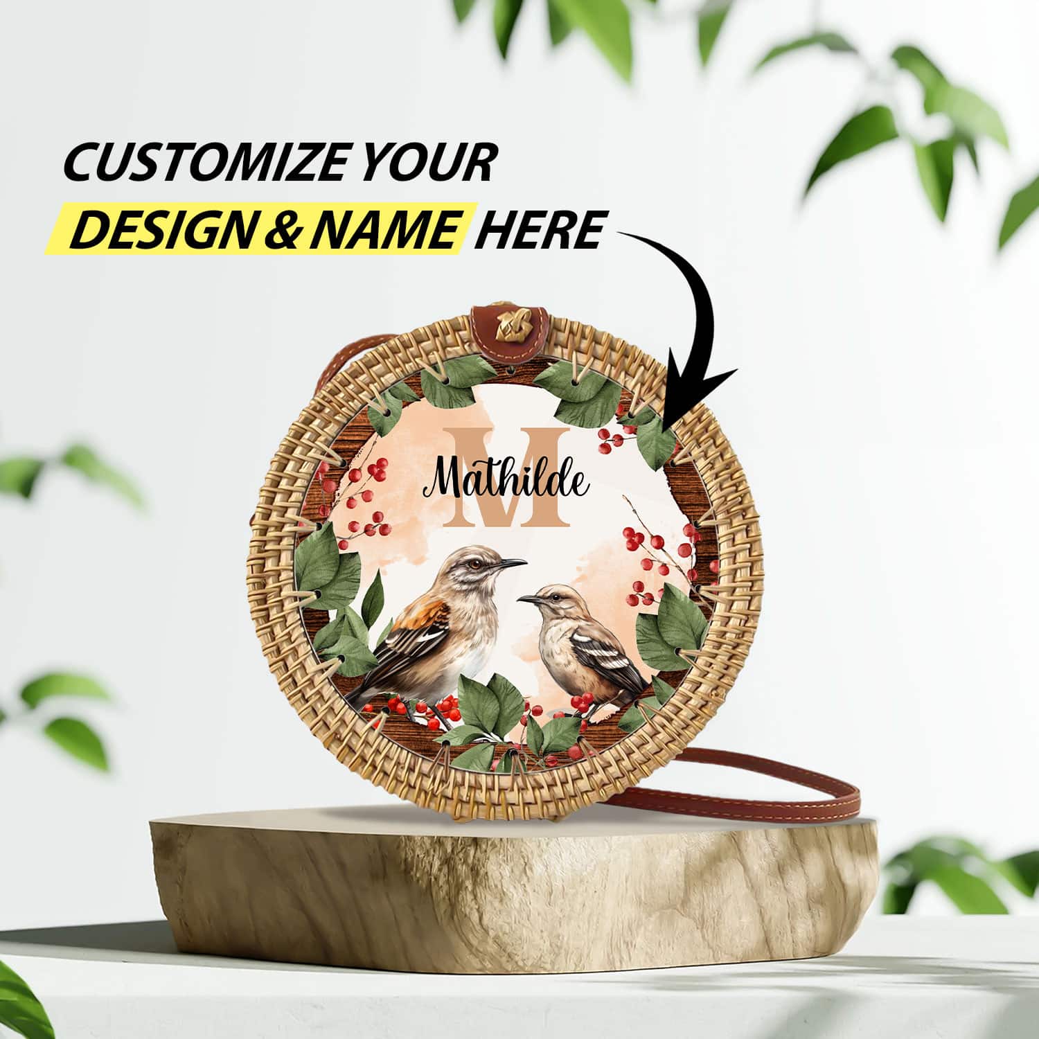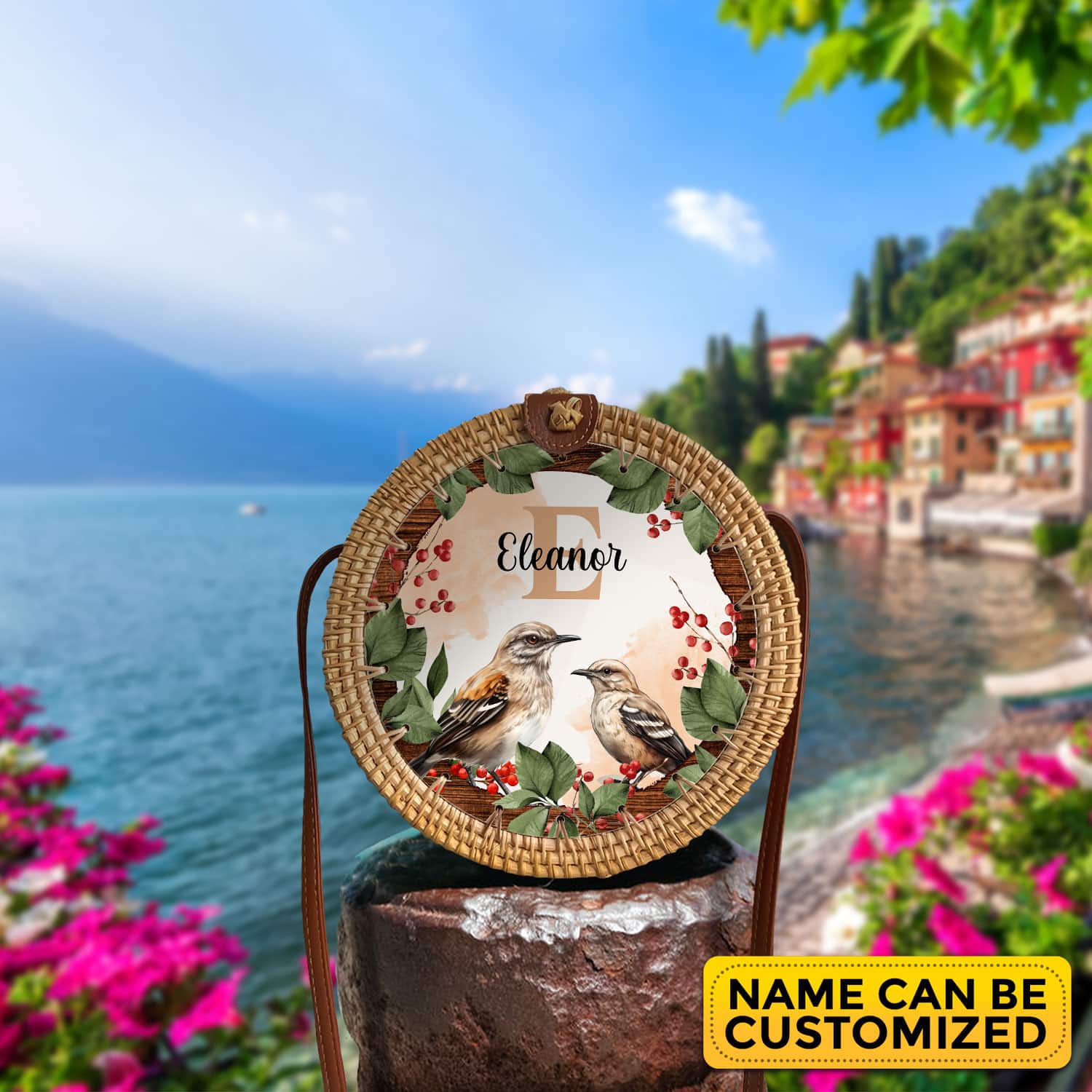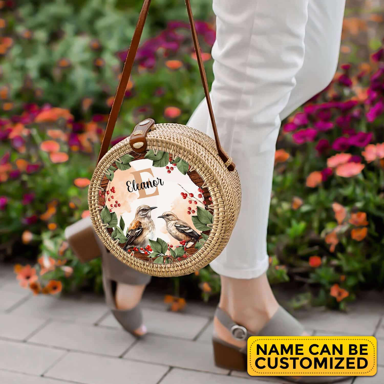 Let’s Shop Personalized Monogram Name Summer Mockingbird Tropical Rattan Bag For Women, Boho Summer Bag!