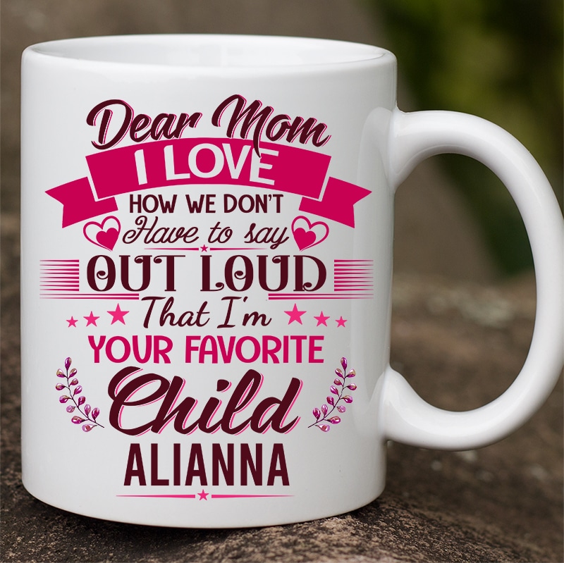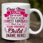 Let’s Shop Custom Name Dear Mom I Love How We Don’t Say I’m Your Favourite Kid Funny Mother’s Day Coffee Mug!