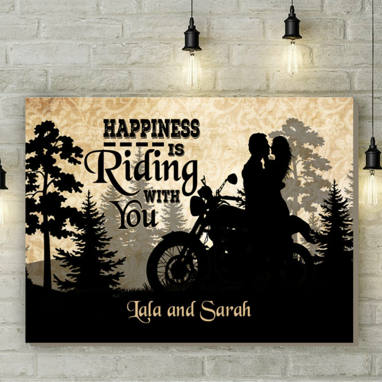 Let’s Shop Personalized Motorcycle Lover Couple Framed Canvas – Happiness Is Riding with You Unframed Poster!