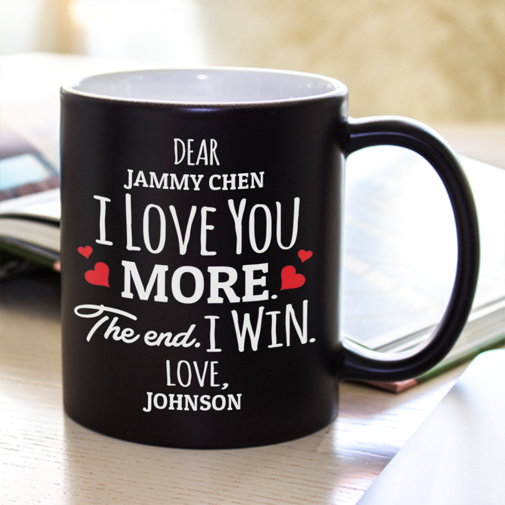Let’s Shop Personalized I Love You More The End I Win Ceramic Coffee Mug – Beer Stein – Water Bottle – Color Changing Mug!