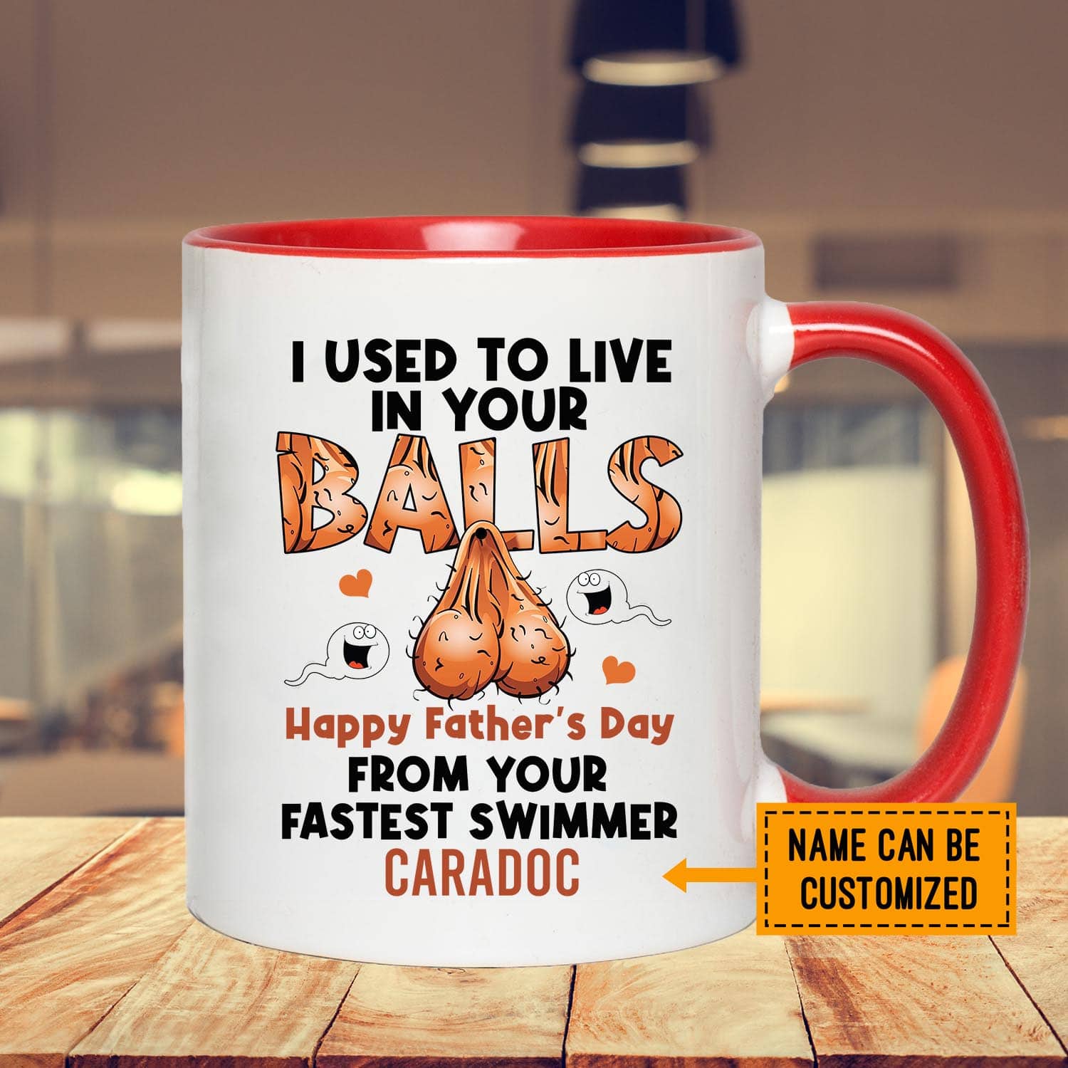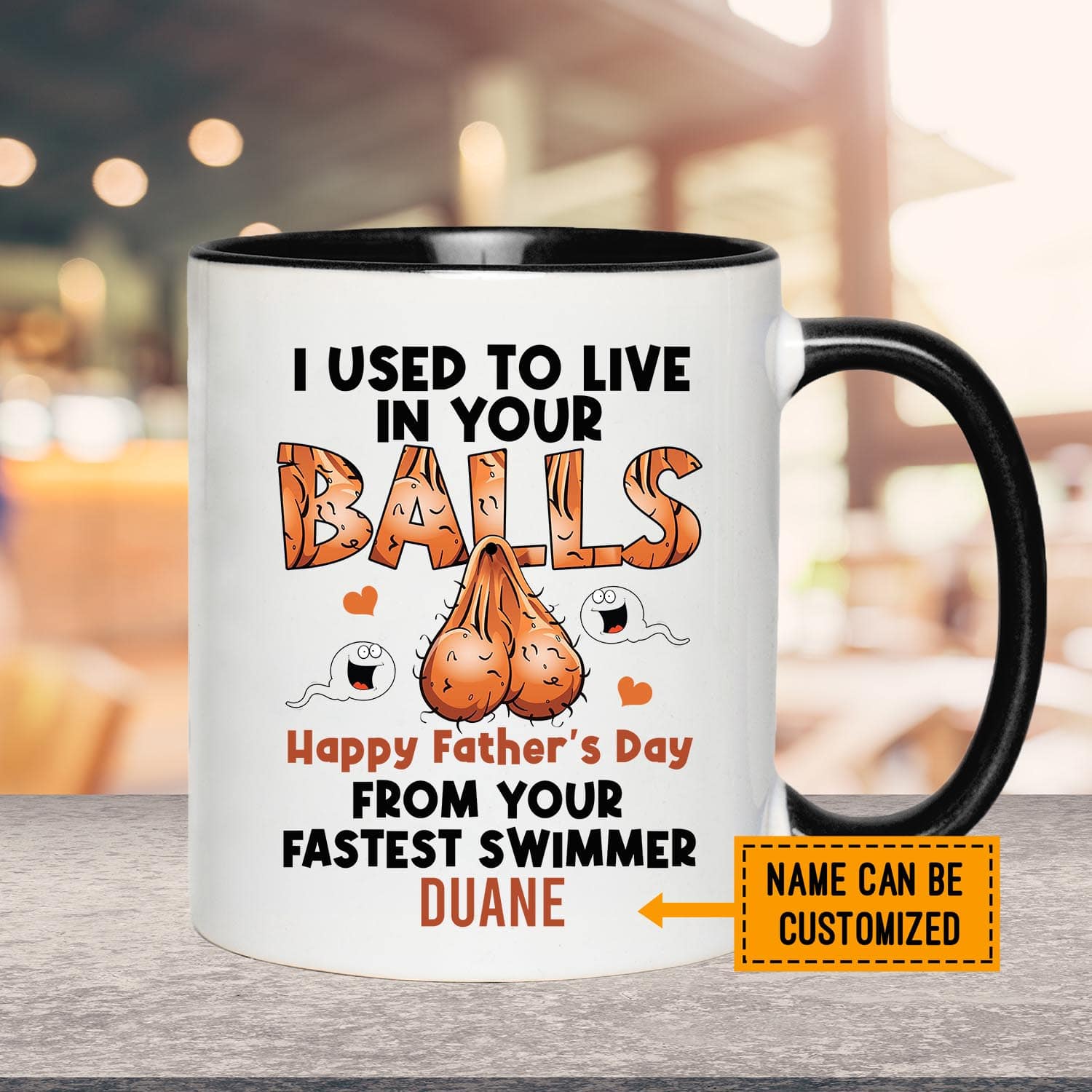 Let’s Shop Personalized I Used To Live In Your Balls Happy Father’s Day From Your Fastest Swimmer Accent Coffee Mug!