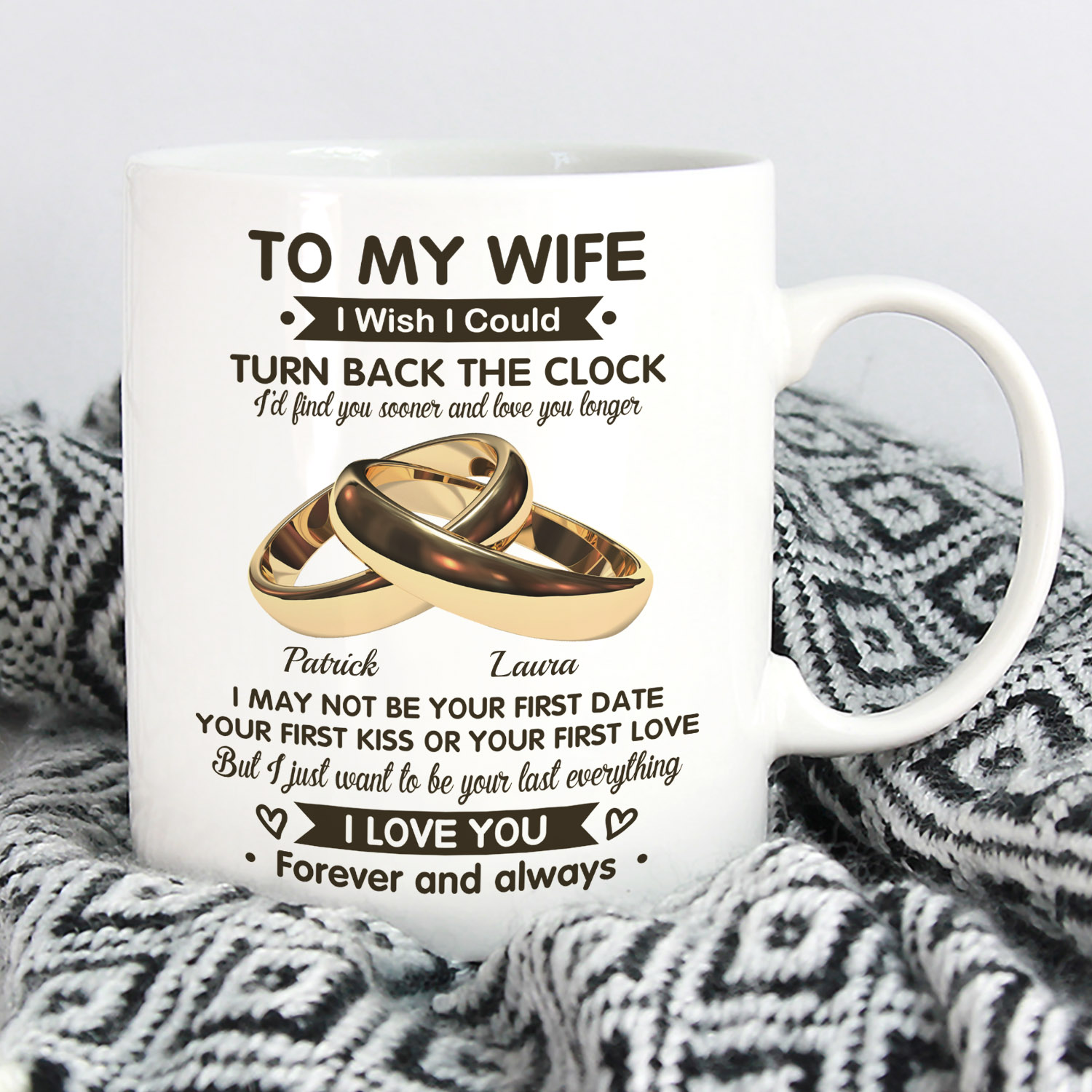Are you spending too much time to find creative merchandise for you or suitable & special gifts for your mommy, your daddy, your son, your daughter, your children, your friends or someone you love? The struggle is over because we have various To My Wife I Wish I Could Turn Back the Clock Coffee Mug, Personalized Coffee Mug for Wife, Personalized Wife Mug, Personalized Mug for Wife, Personalized Wife Coffee Mug, Personalized Wife Mugs, Valentines Coffee Mug for Wife, Valentine Coffee Mugs for Wife which will make perfect presents for your beloveds. In order to make your present stand out, we have created lots of unique and awesome customized photo gifts & personalized designs.