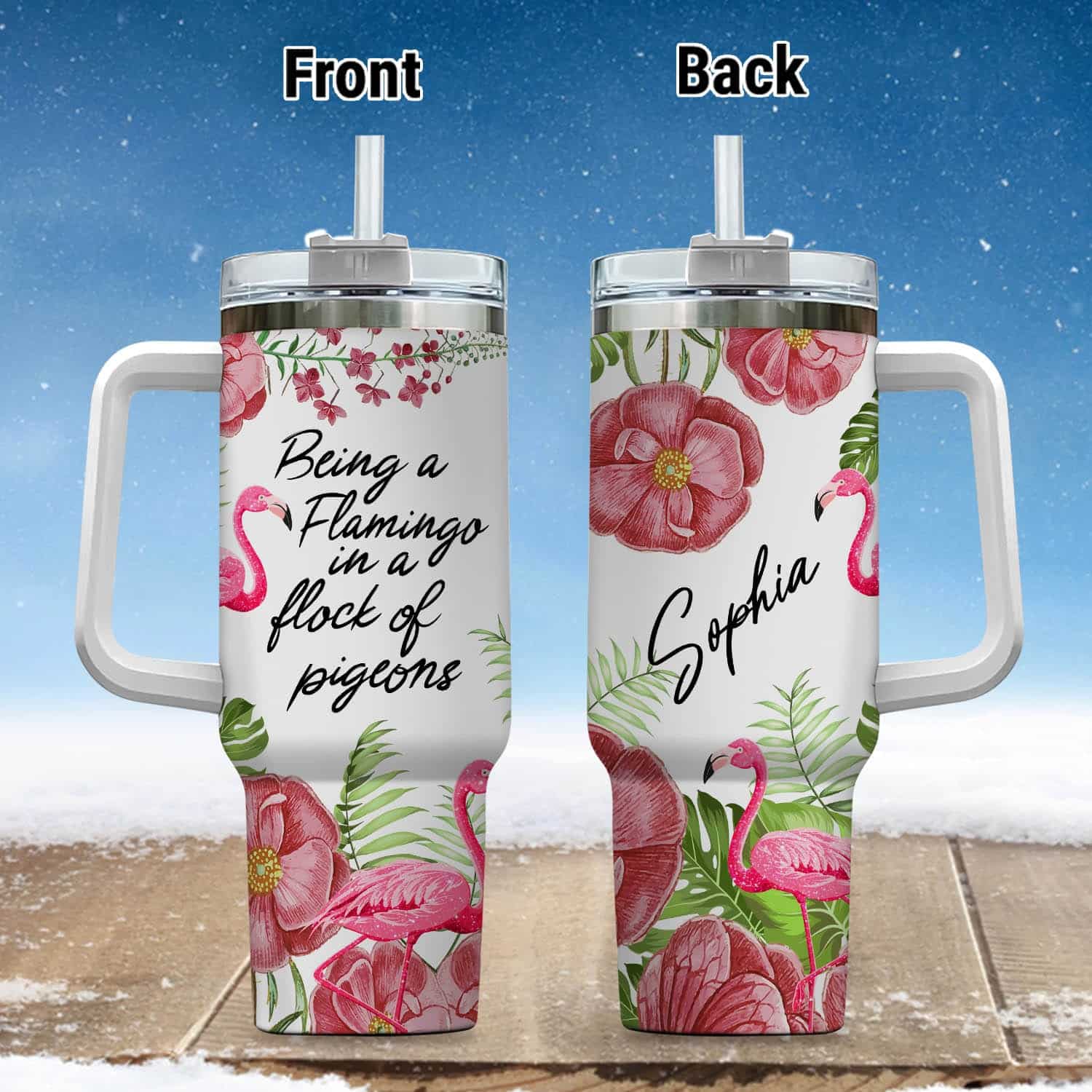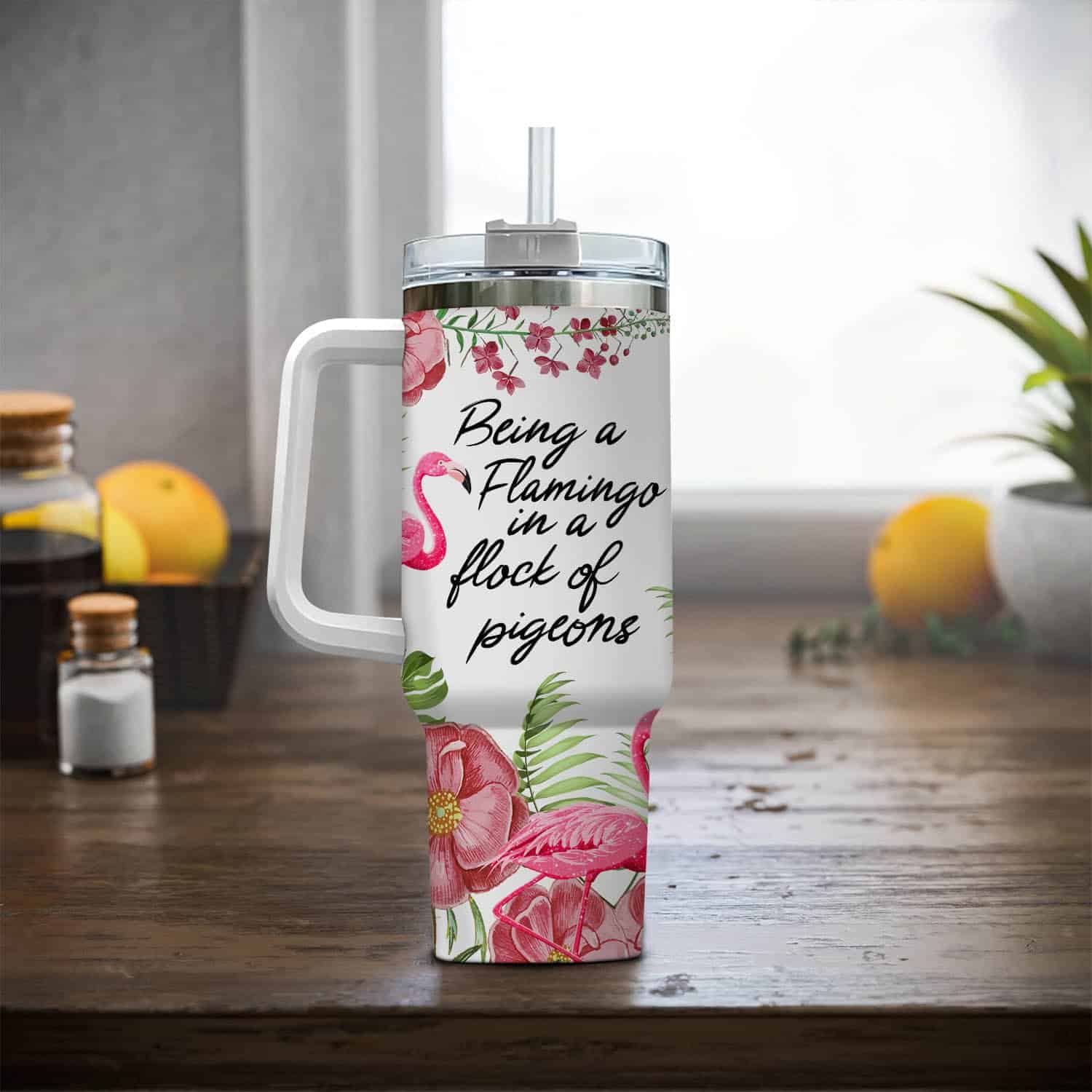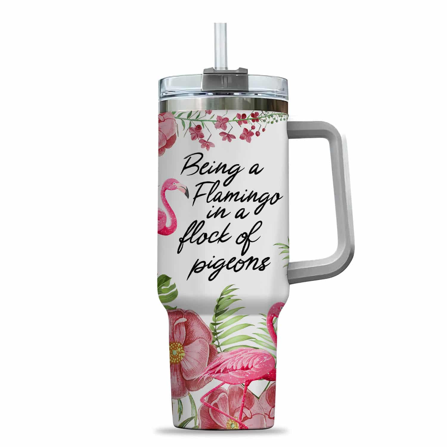 Let’s Shop Personalized Name 40 oz Flamingo Tumbler with Handle and Straw Lid – Being A Flamingo In a Flock Of Pigeons Tumbler!